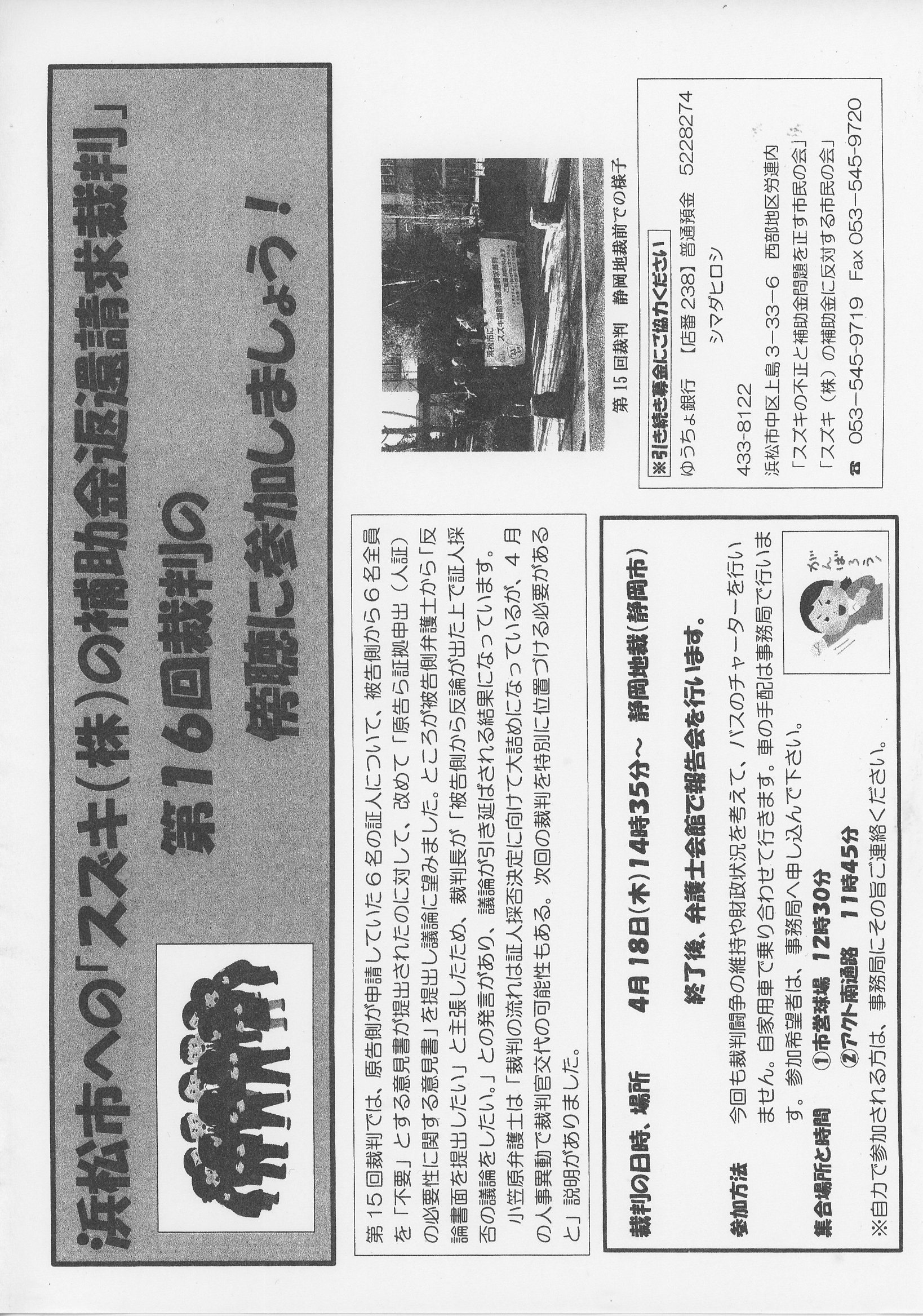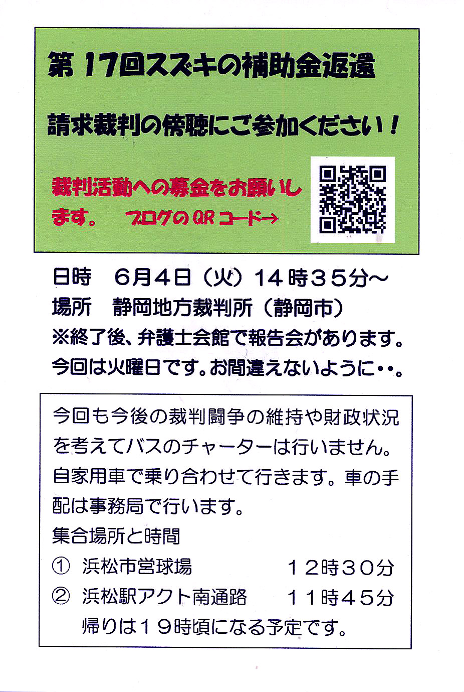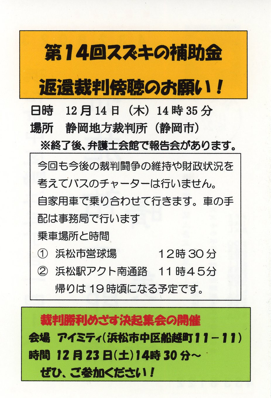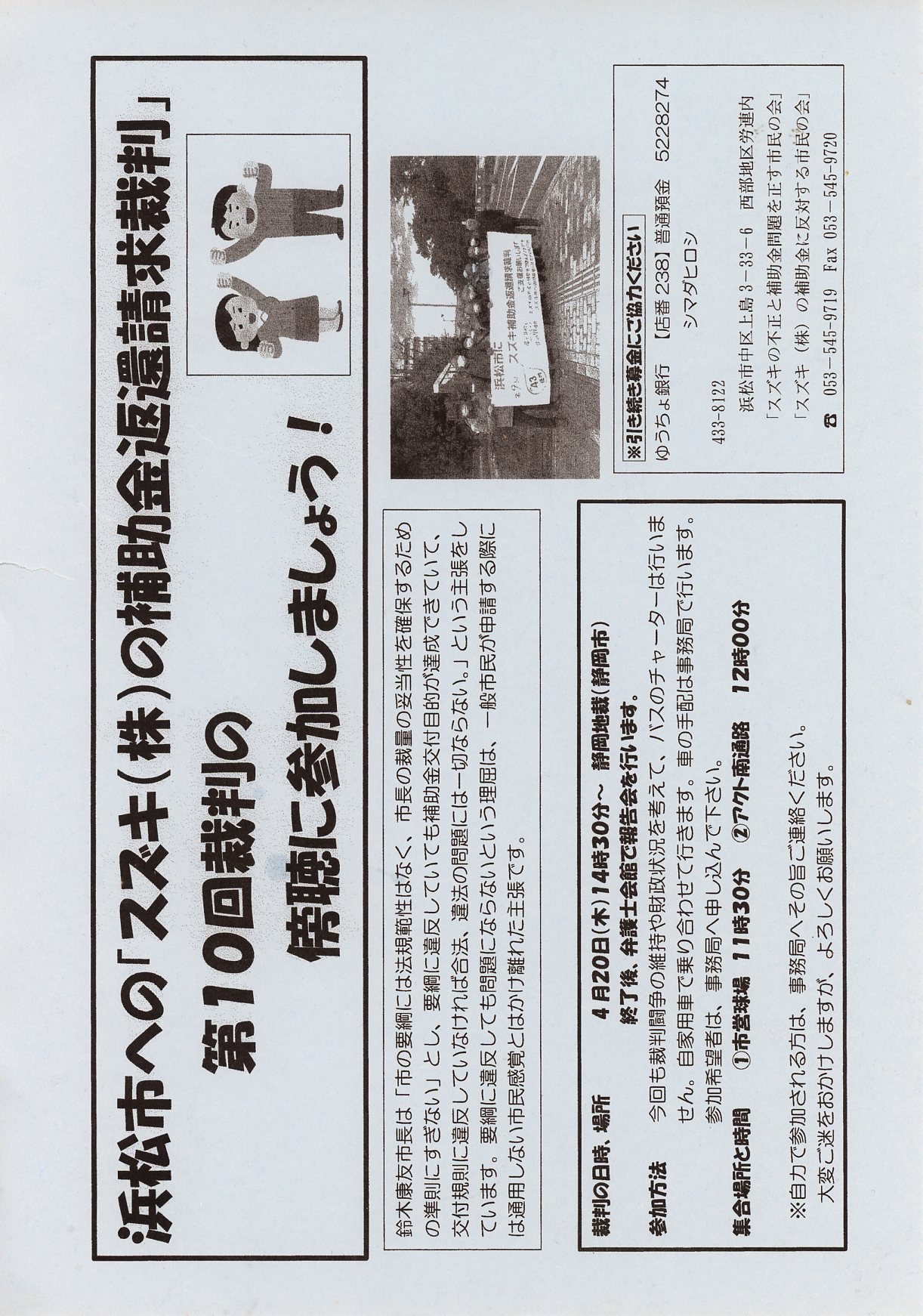 第9回スズキの補助金返還裁判膨張のお願い スズキの不正と補助金問題を正す市民の会