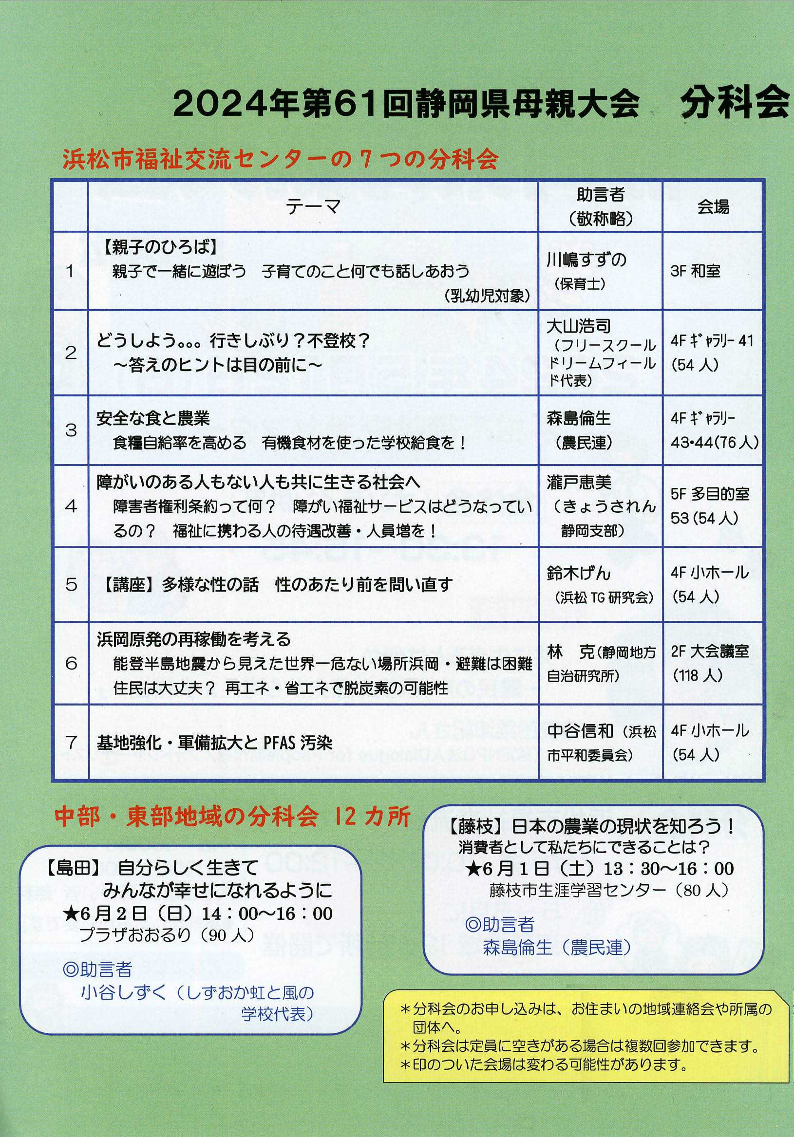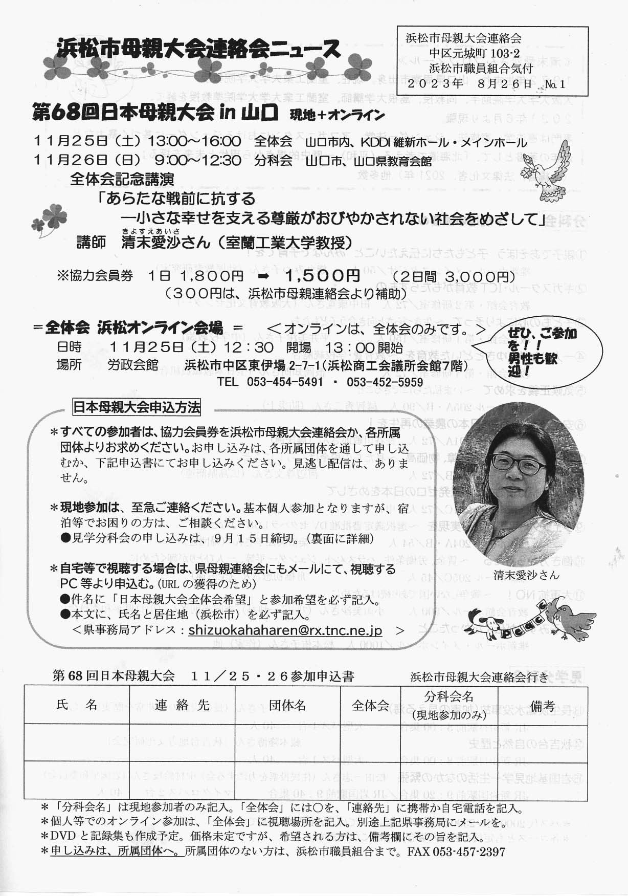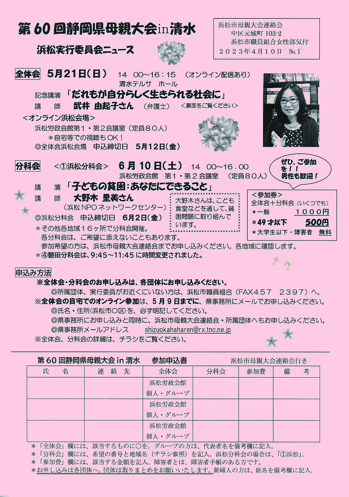 申し込み 静岡県母親大会連絡会
