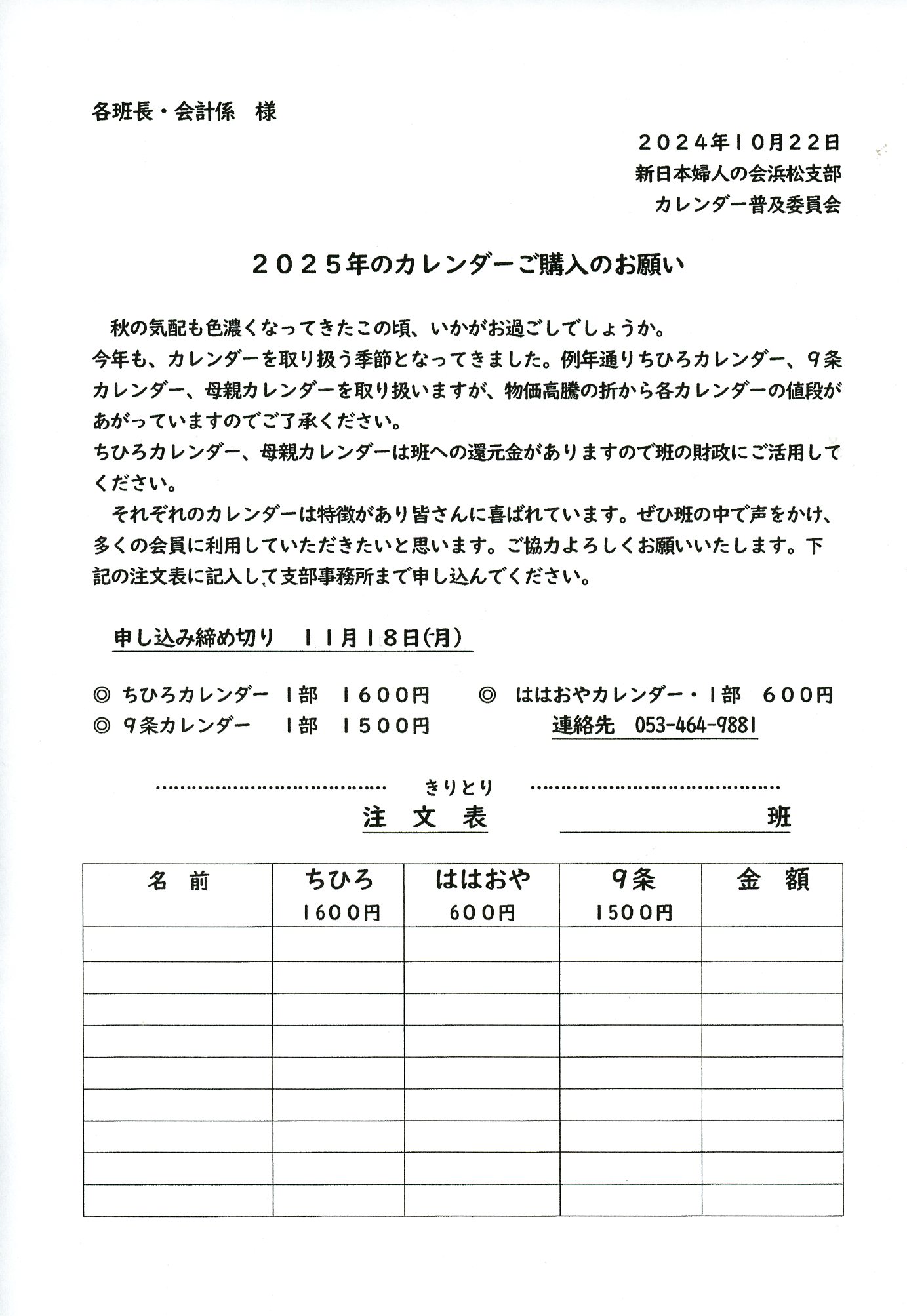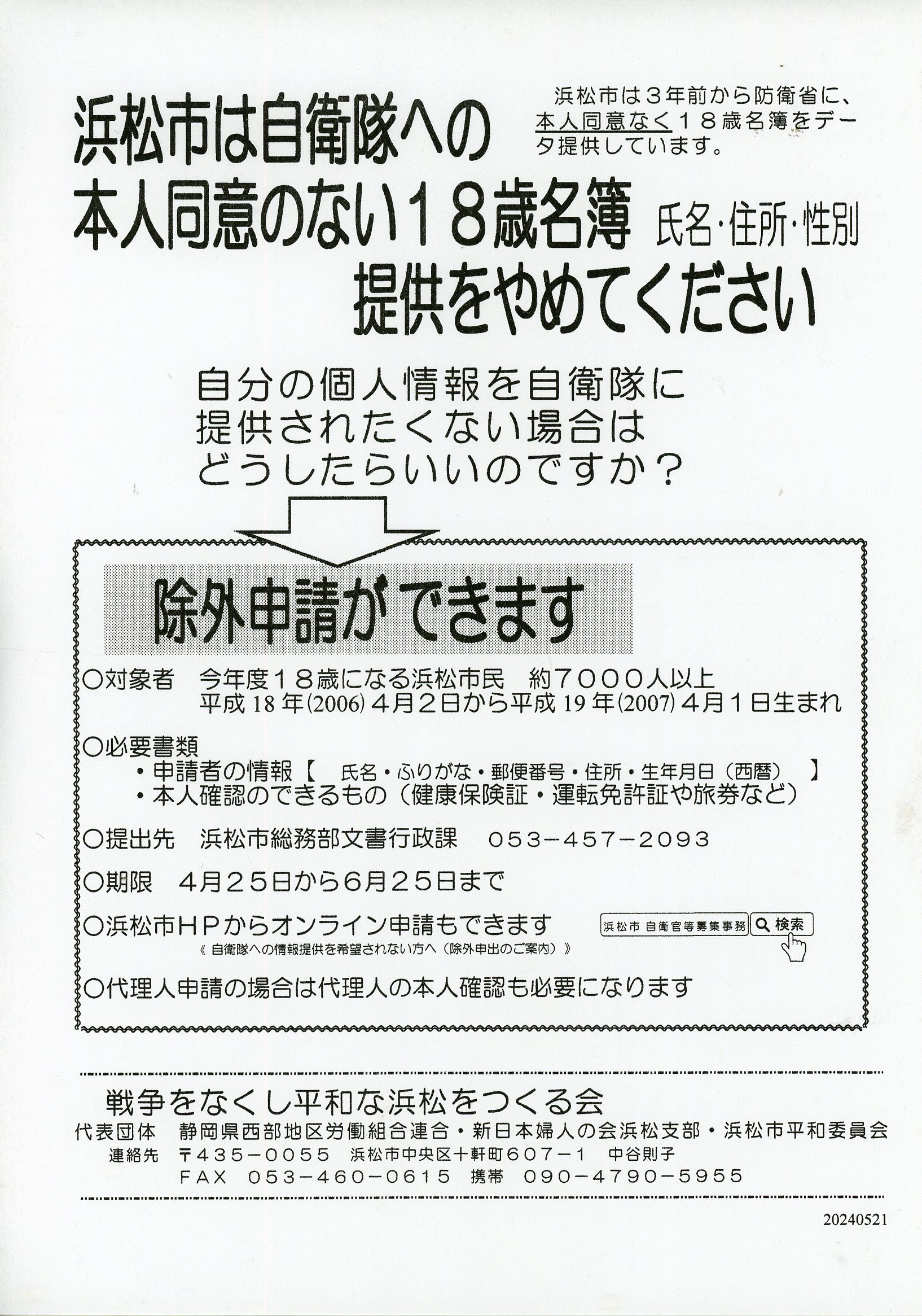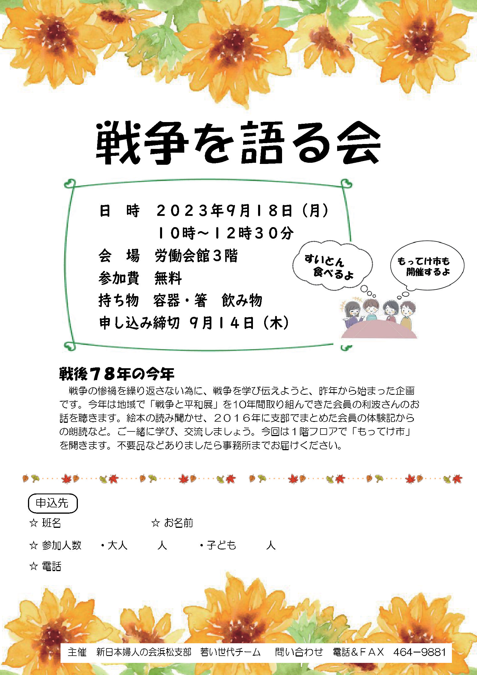 申し込み 静岡県母親大会連絡会