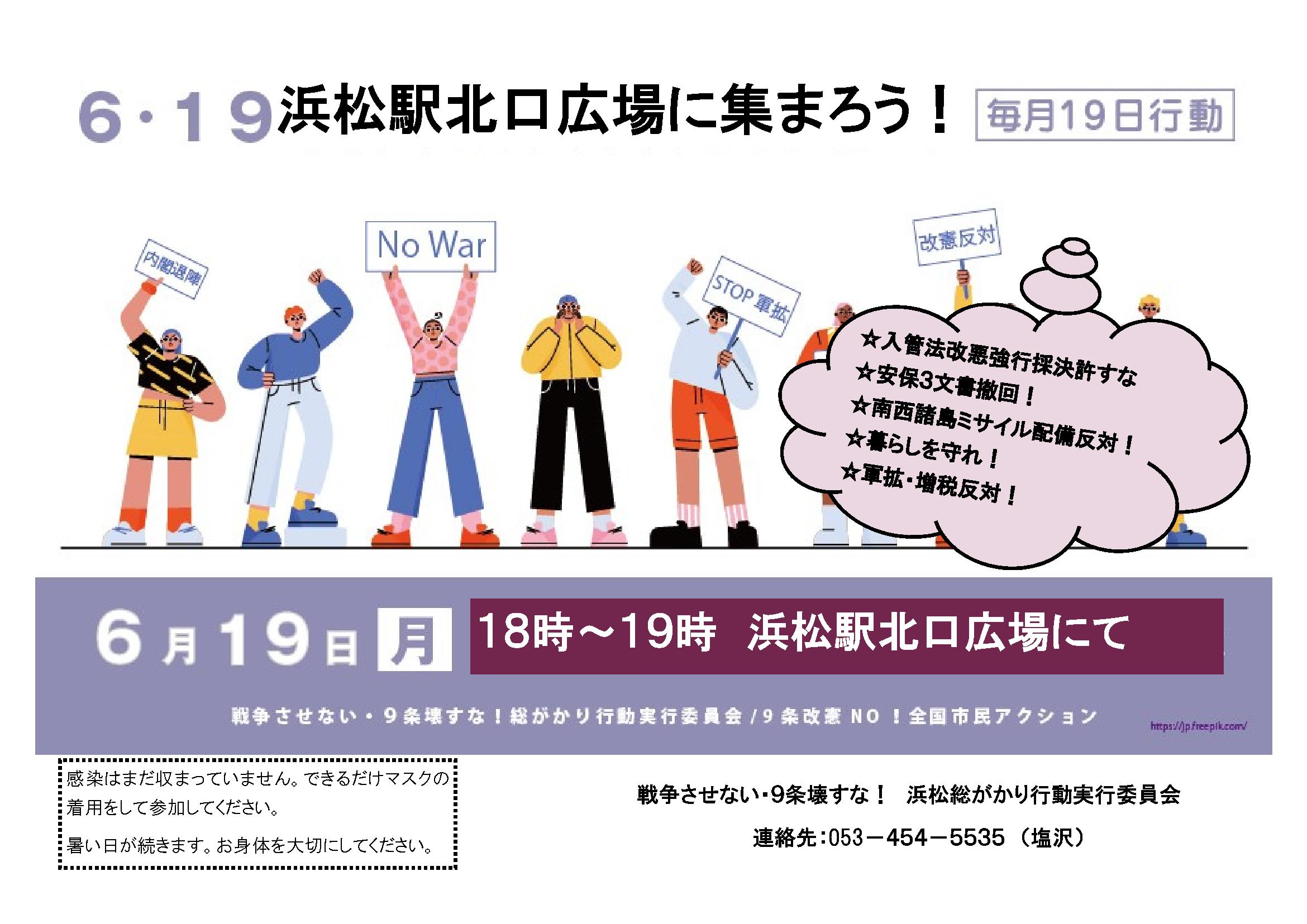 入管法改悪強行採決許すな・軍拡・増税反対! 戦争させない・9条壊すな!浜松総がかり行動実行委員会