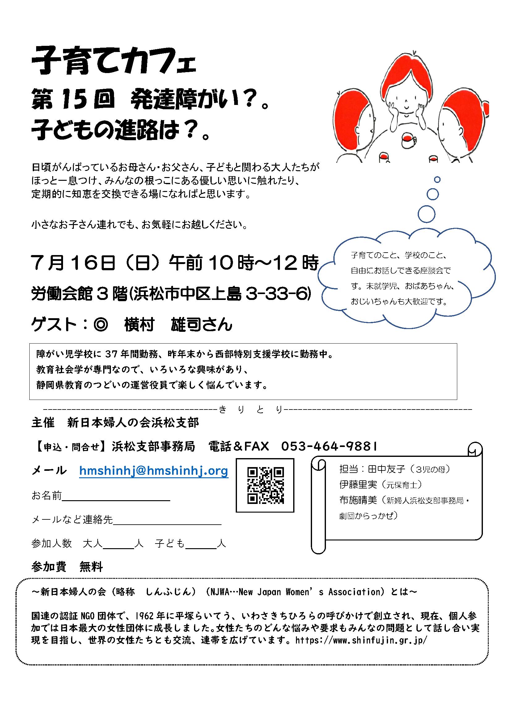 第15回発達障がい?子どもの進路は? ゲスト:横村雄司 新日本婦人の会浜松支部