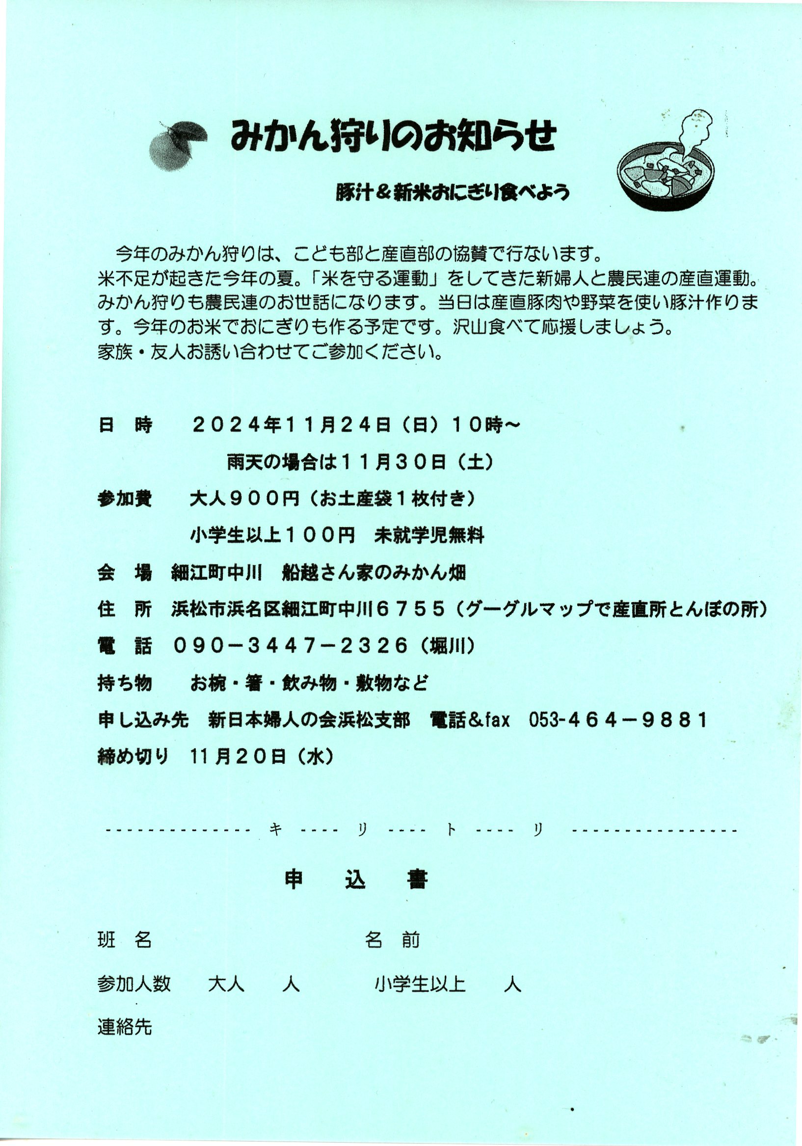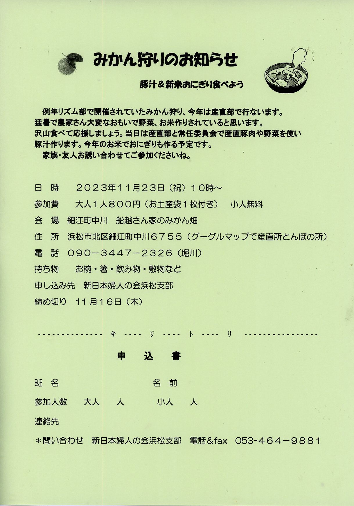 みかん狩りのお知らせ 新日本婦人の会浜松支部464-9881