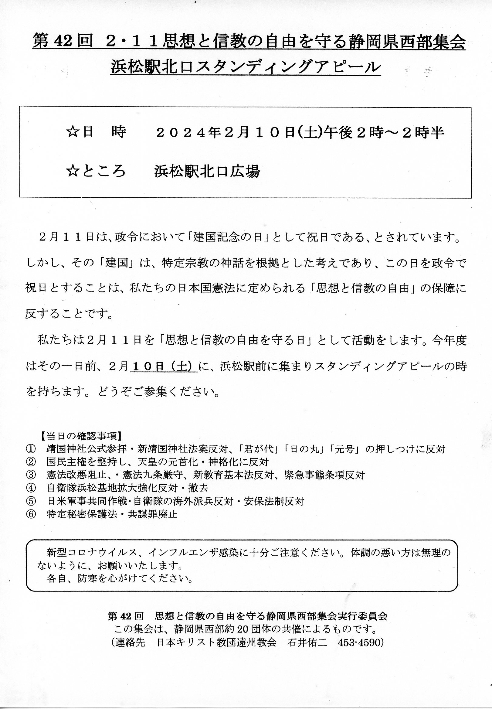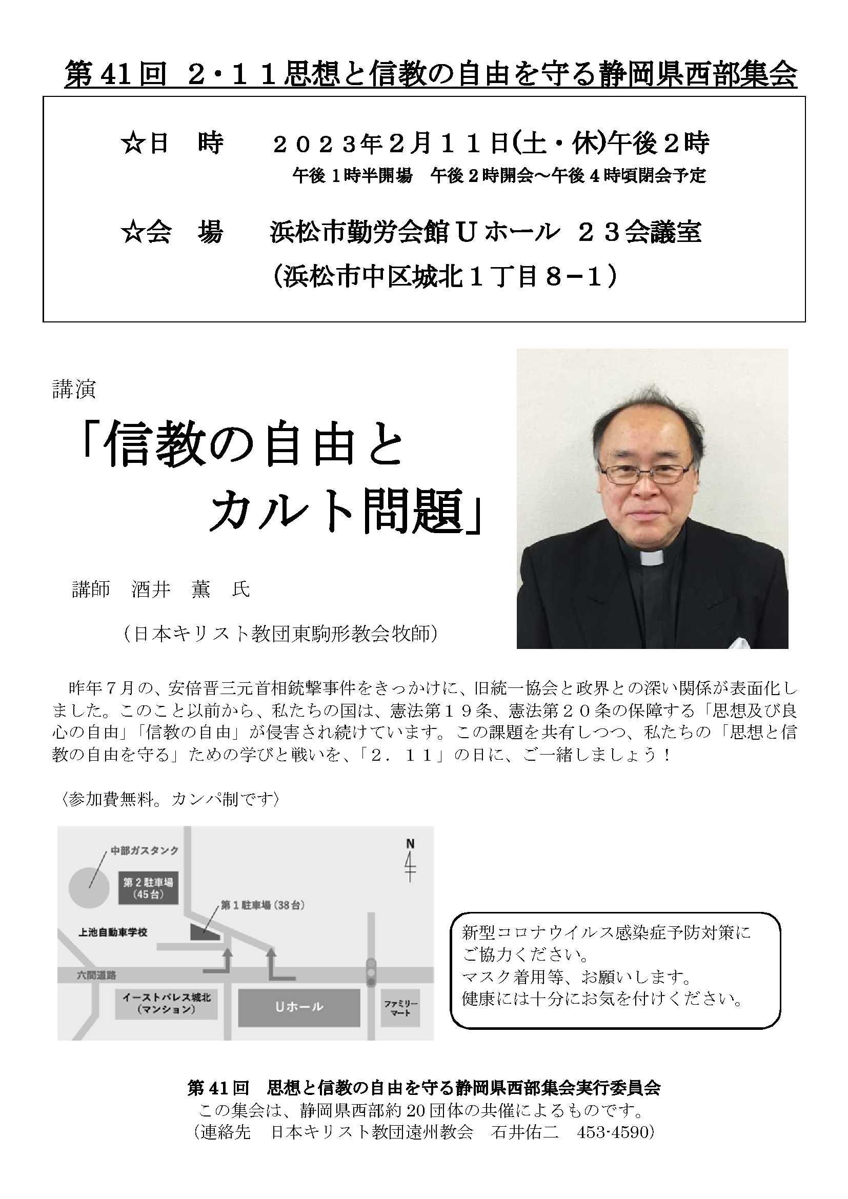 02月11日(日)14:00~ 第41回 2・11思想と信教の自由を守る静岡県西部集会