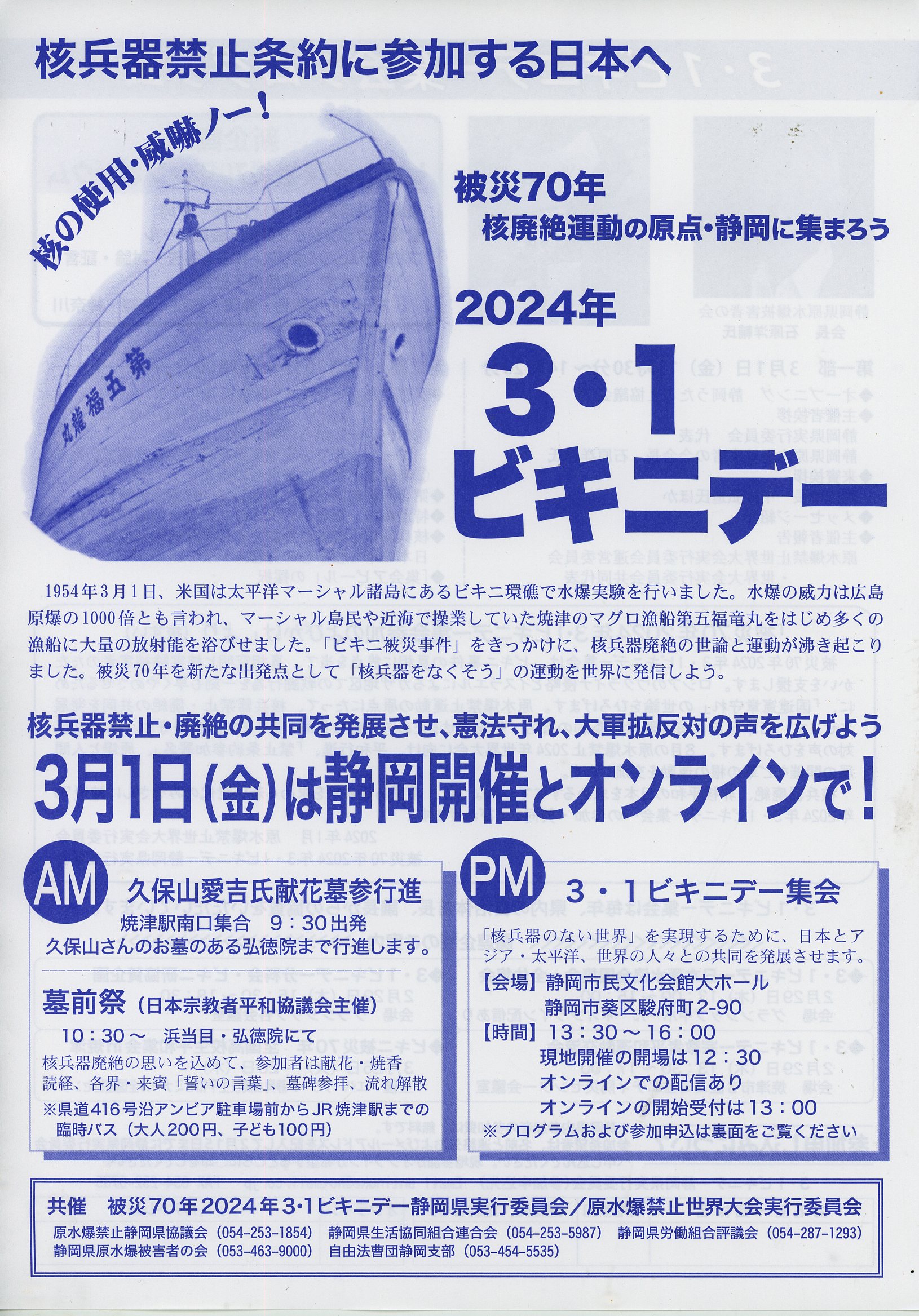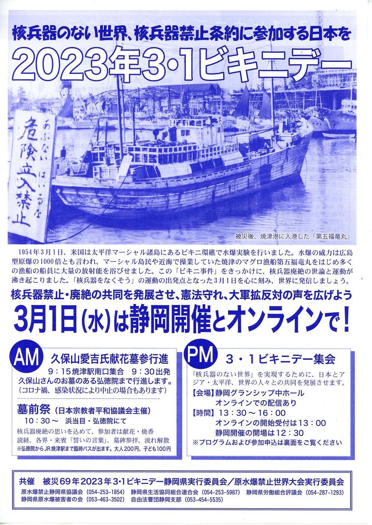 静岡開催とオンライン 被災69年2023年3・1ビキニデー静岡実行委員会/原水爆禁止世界大会実行委員会