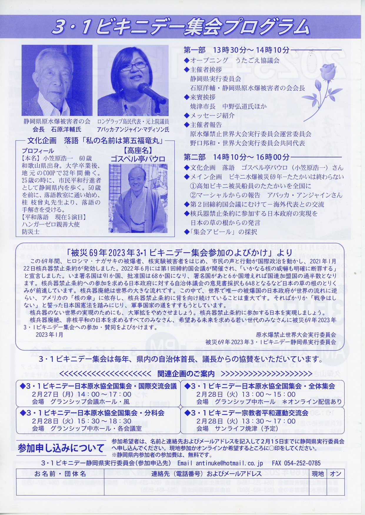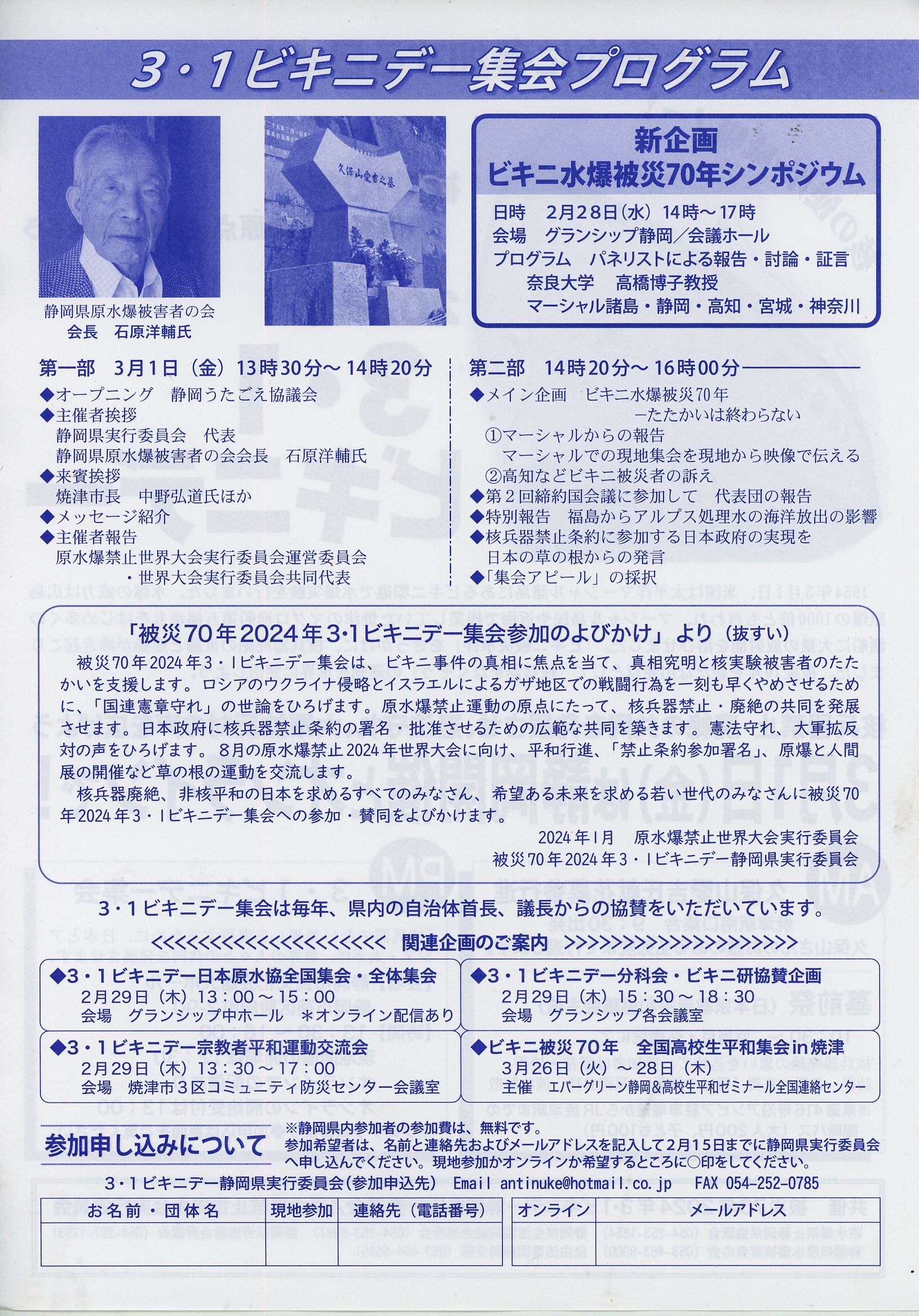 日本政府による角禁止条約達成の都市へ 『3・1ビキニデー』集会プログラム 3・1ビキニデー静岡県実行委員会