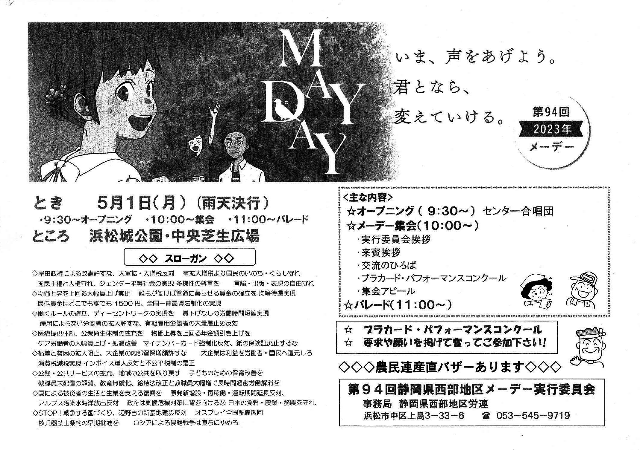 いま、君となら、変えていける。2023年メーデー 第94回静岡県西部地区メーデー実行委員会