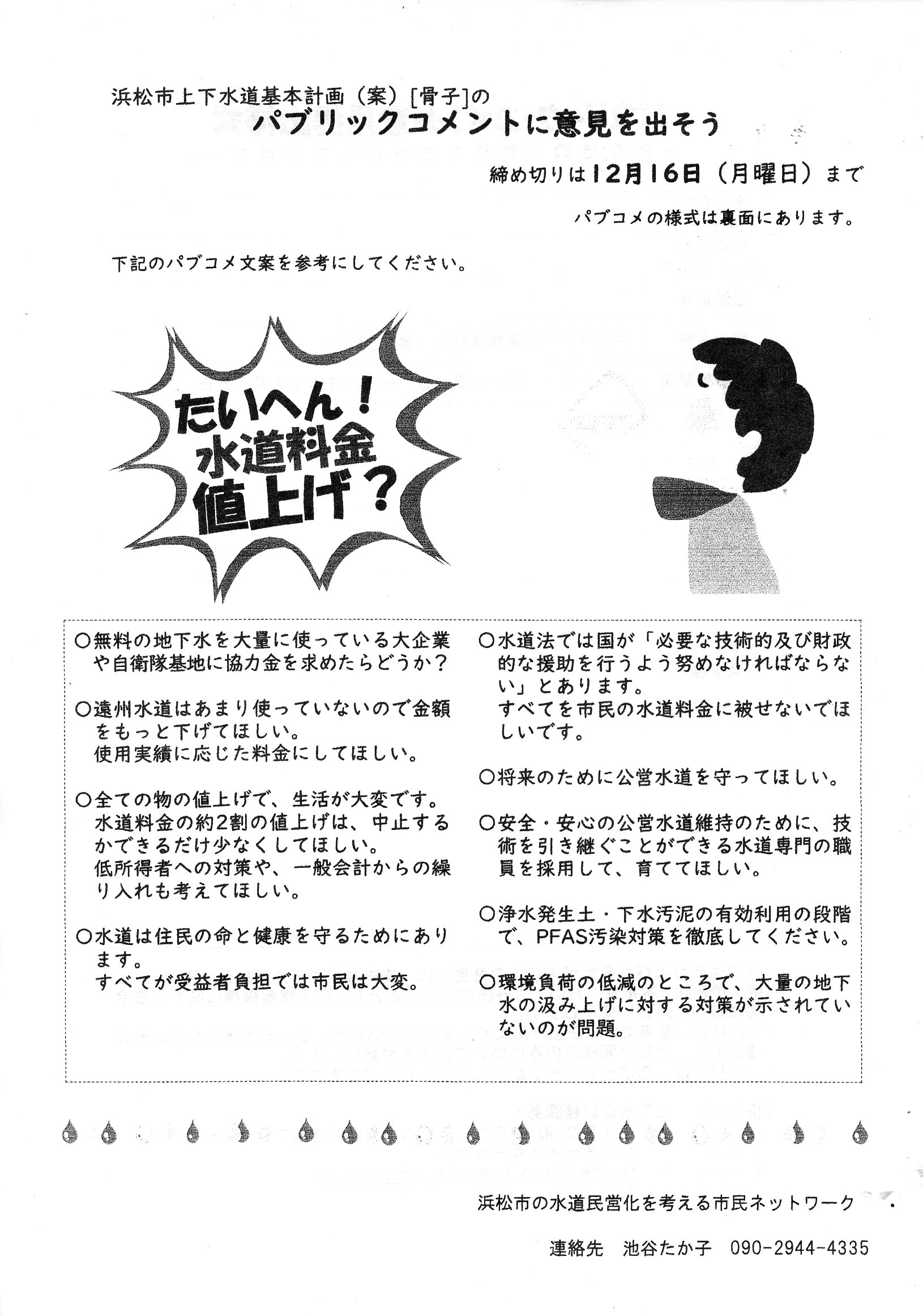 浜松市上下水道基本計画(案)「骨子」のパブリックコメントに意見を出そう