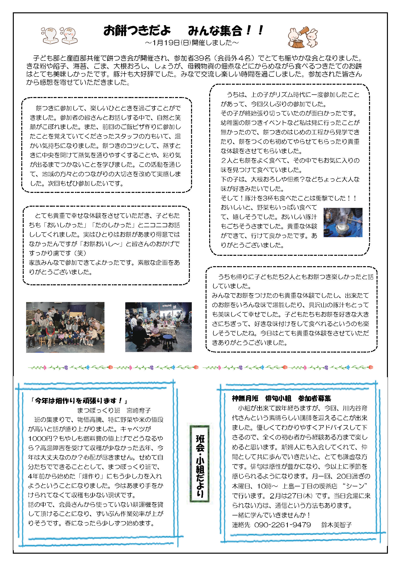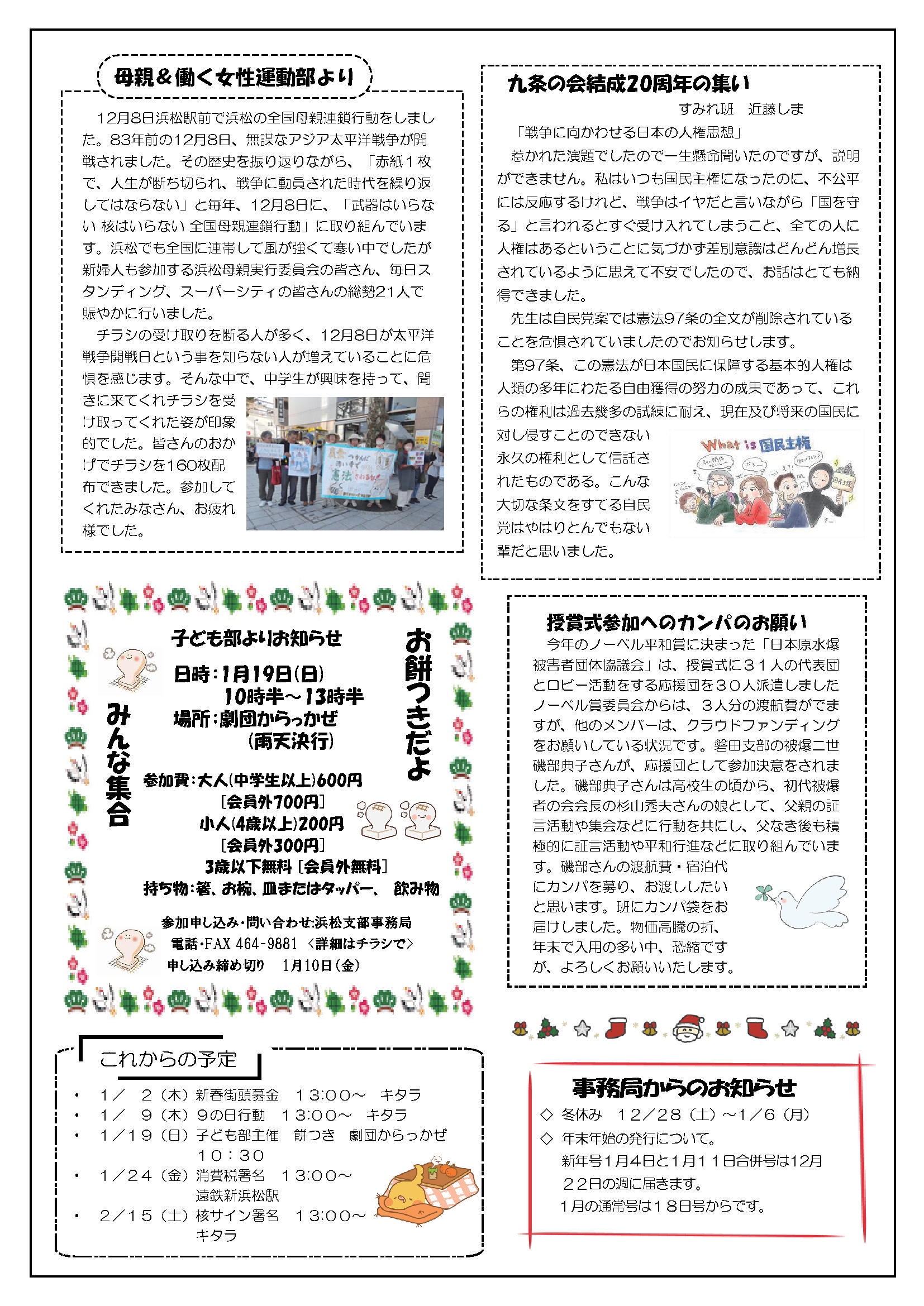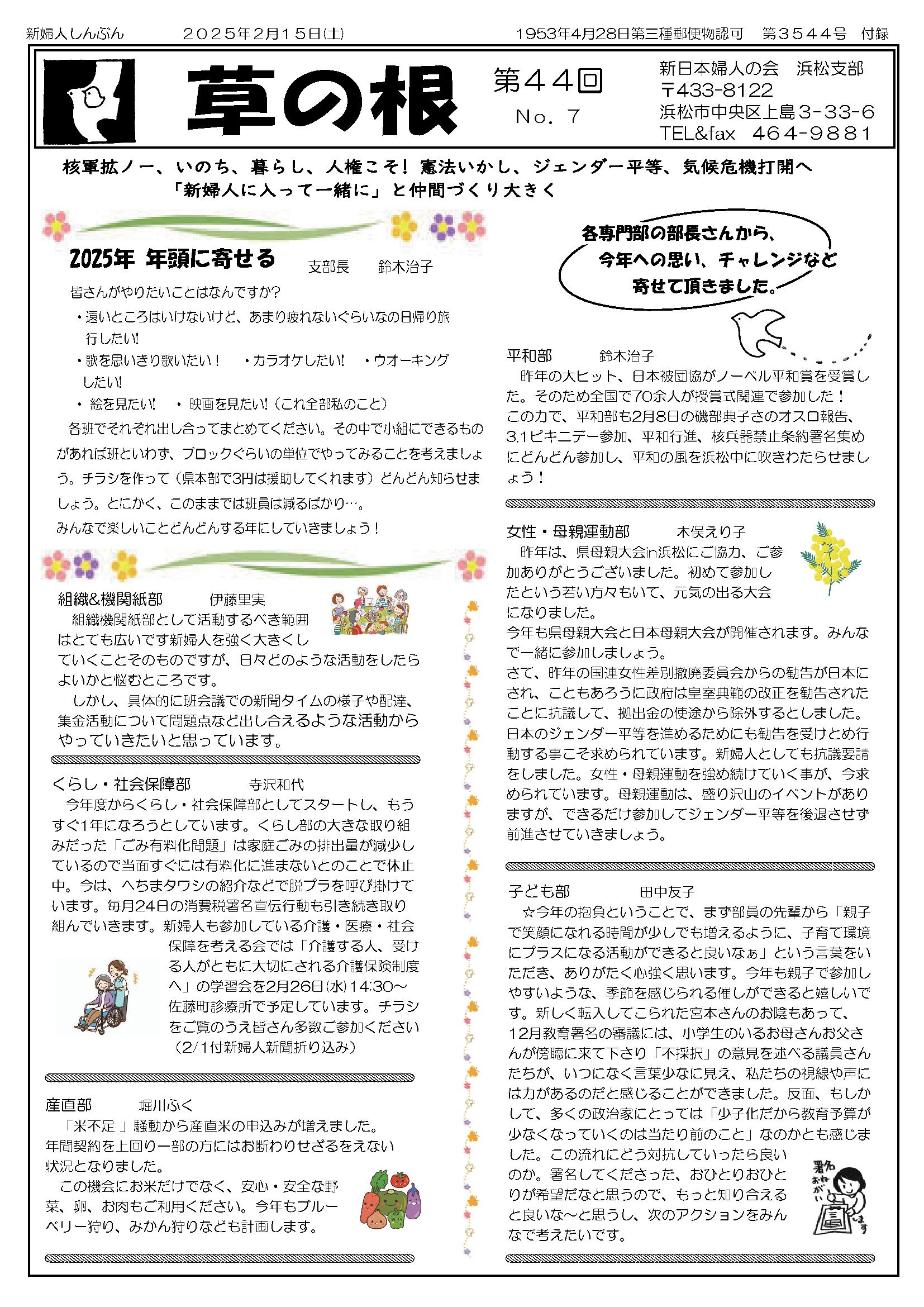 2025年2月15日(土) 草の根 第44回 No07発行 専門部の今年のチャレンジ お餅つきだよ みんな集合 新日本婦人の会浜松支部機関紙
