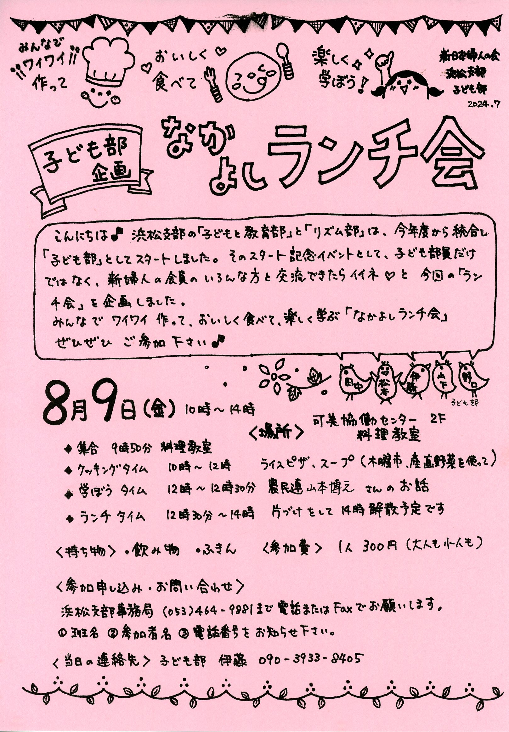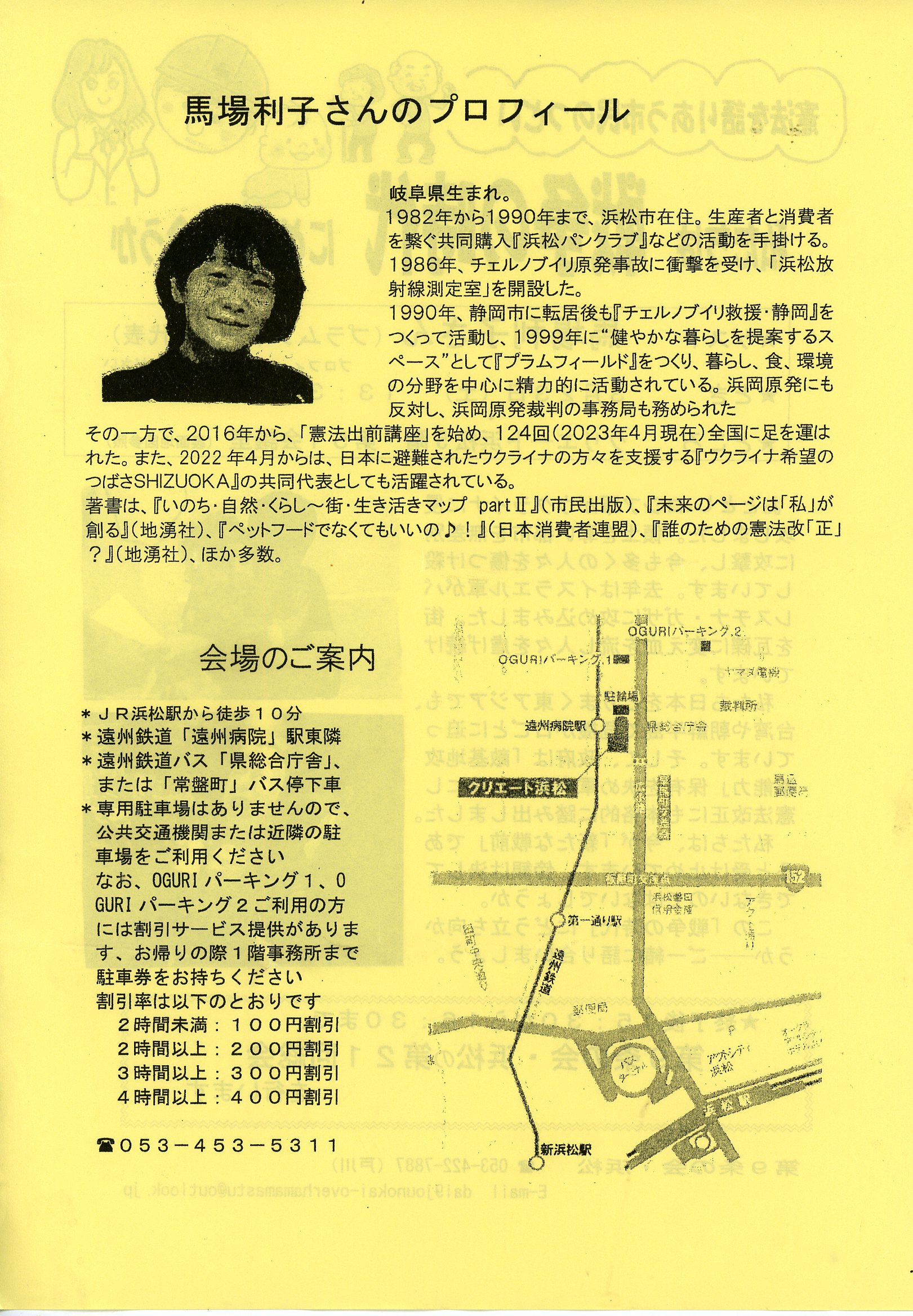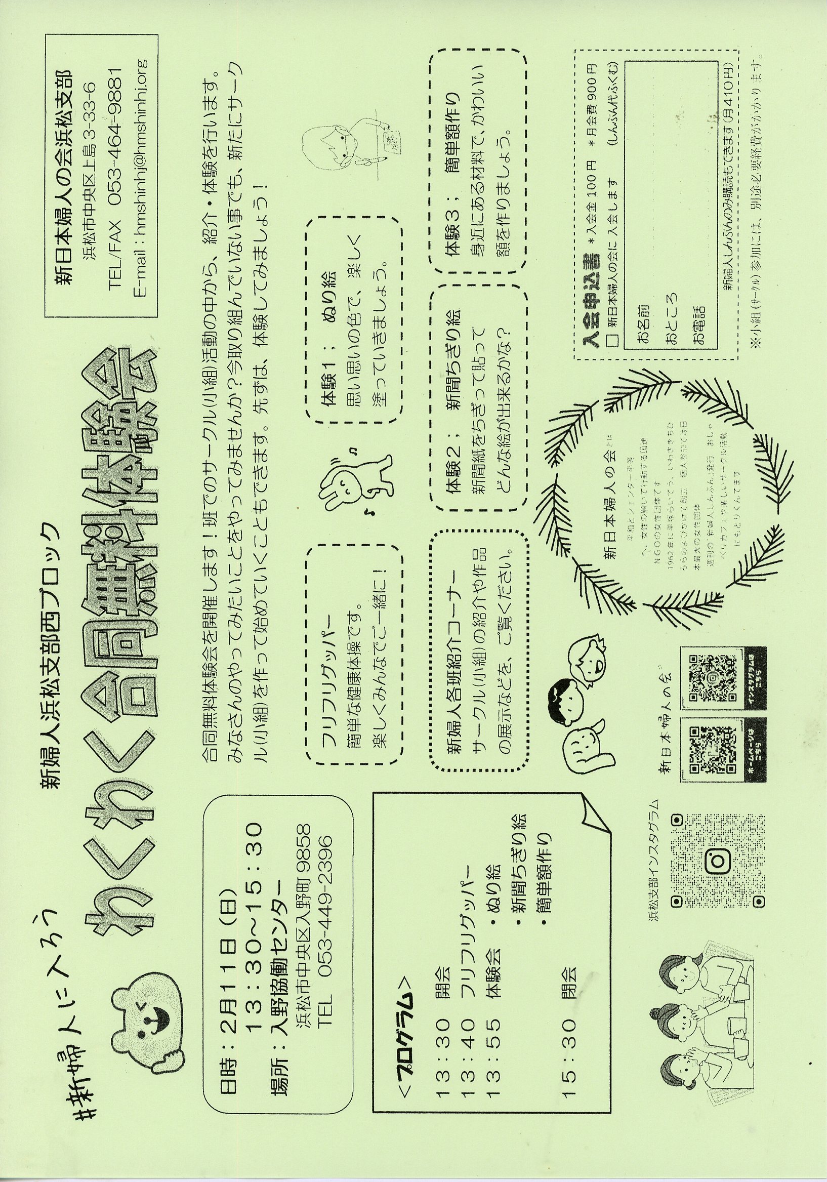 4月27日(日)10:00~15:00 会場:まつのき保育園 『新婦人フェスタ』 会場案内 主催:新日本婦人の会 浜松支部 TEL&FAX 464-9881