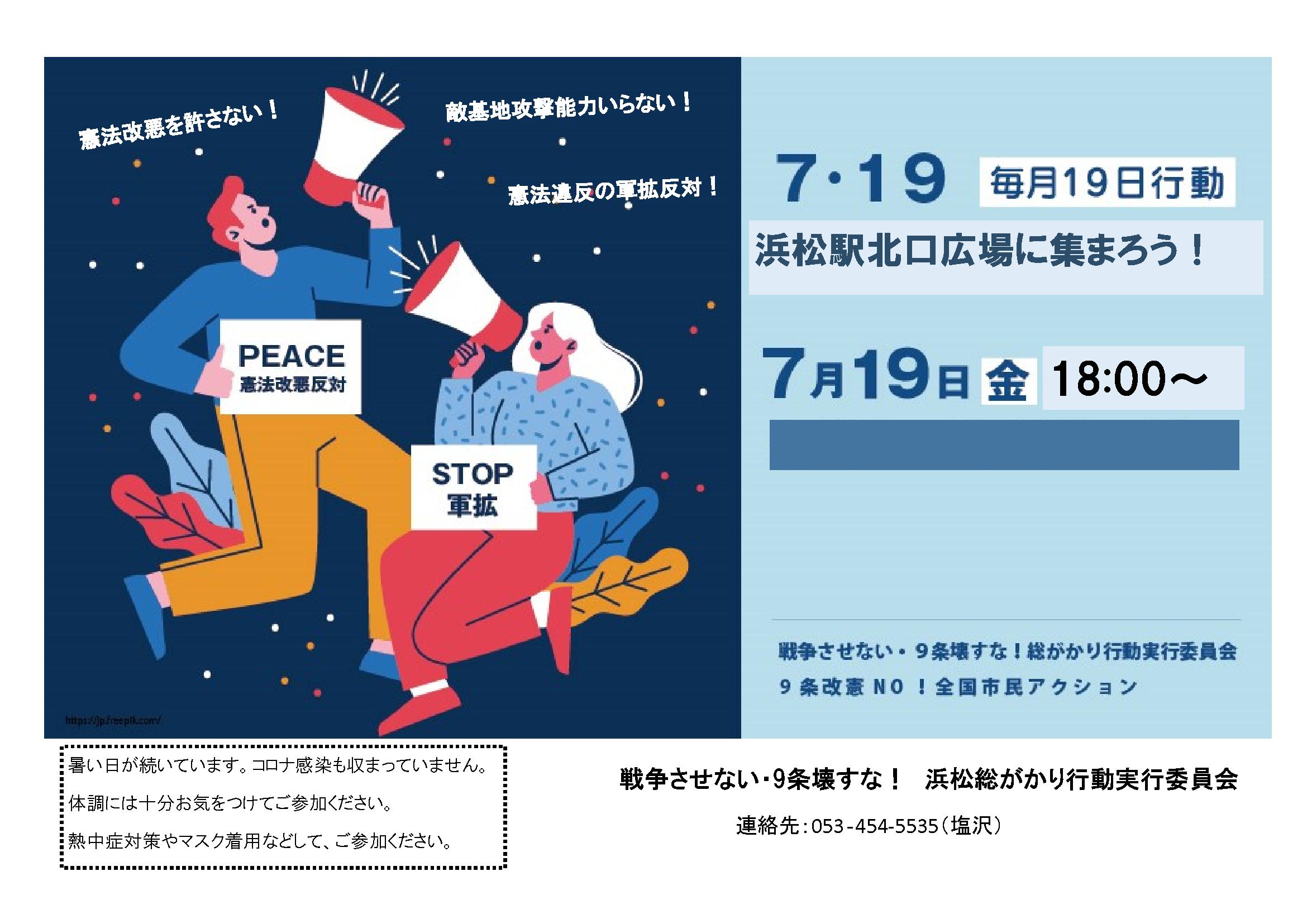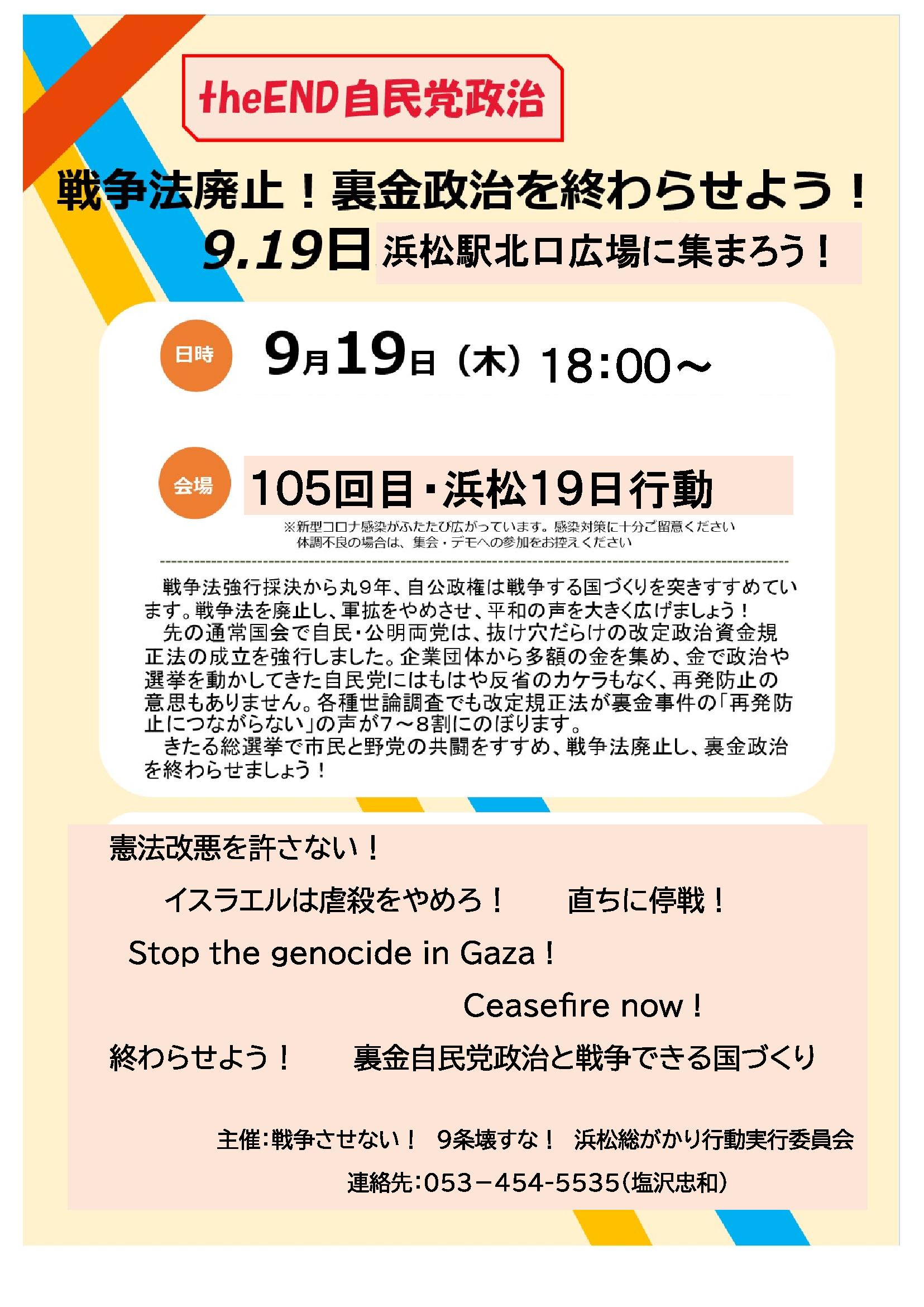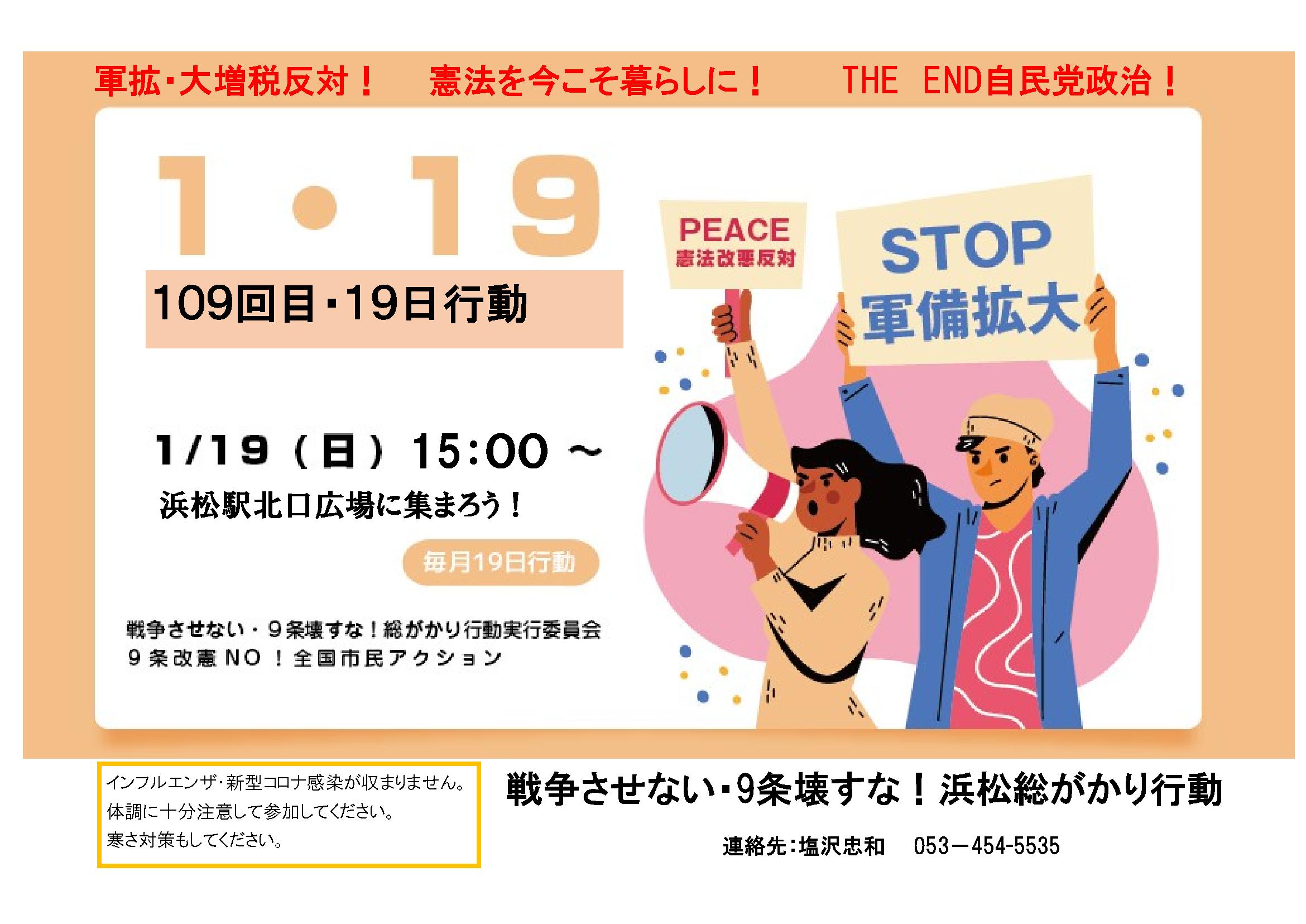 109回目19日行動 戦争させない・9条壊すな!総がかり行動浜松実行委員会