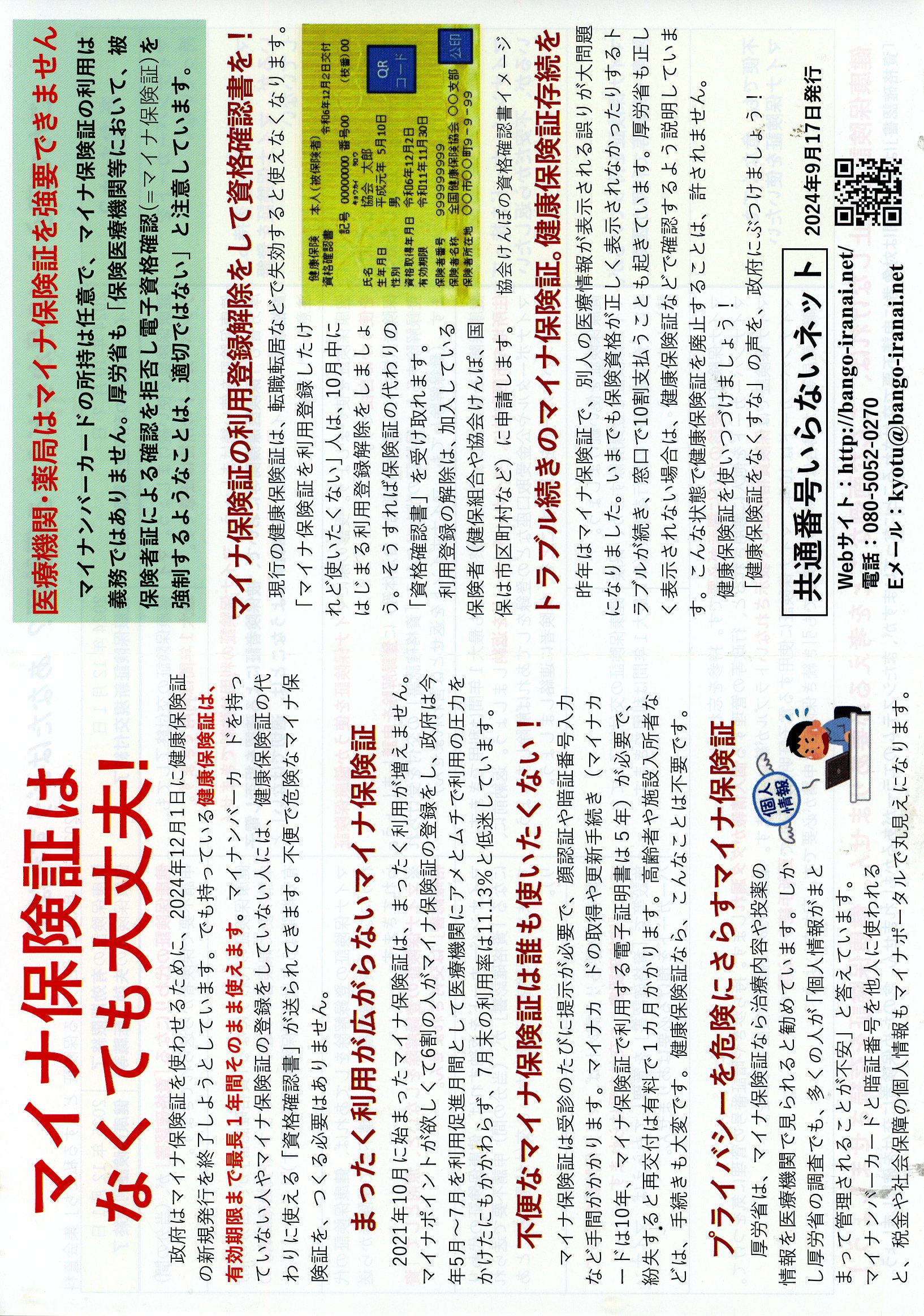 マイナ保険証はなくても大丈夫 12月からどうなる保険証 共通番号いらないネットワーク