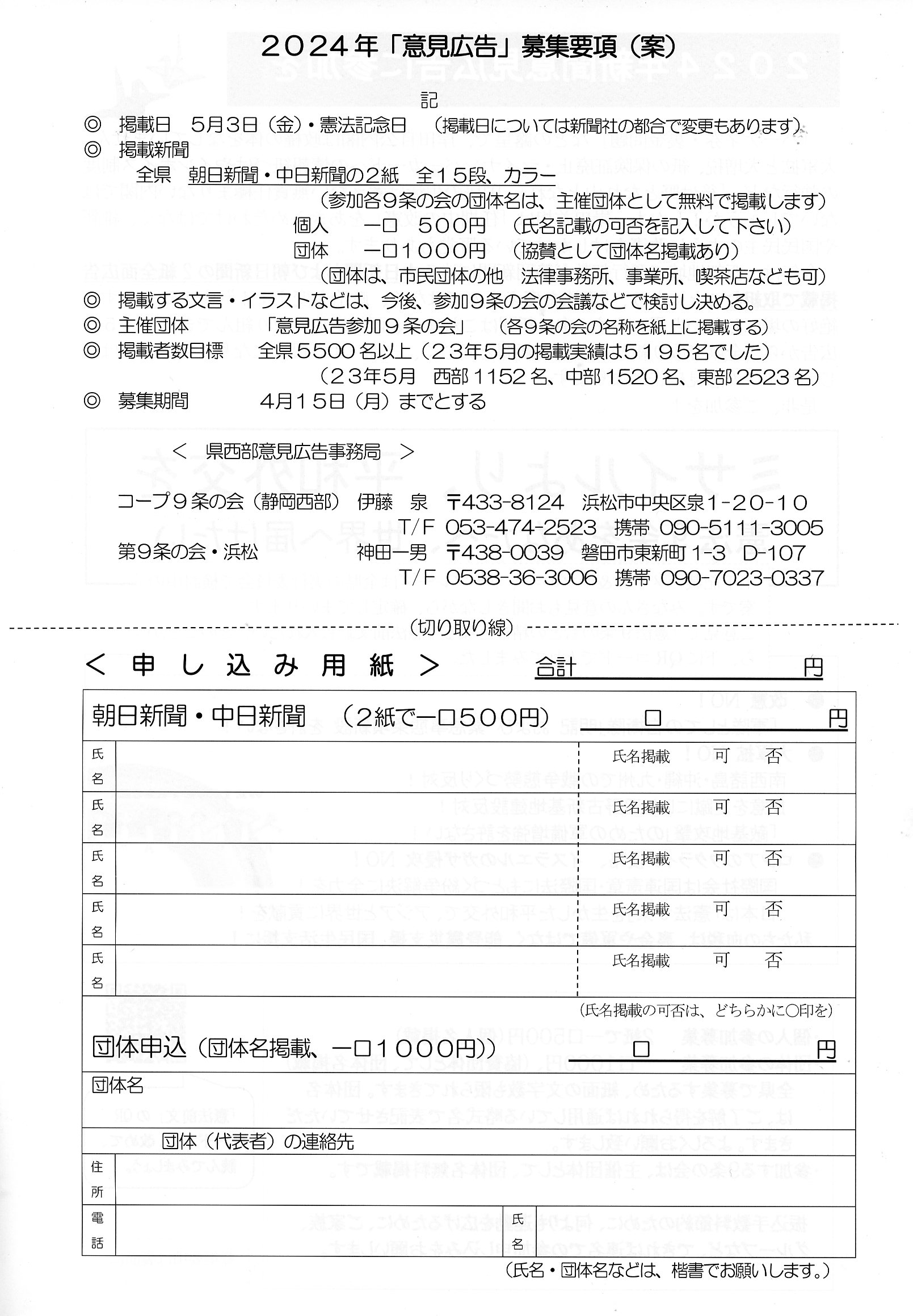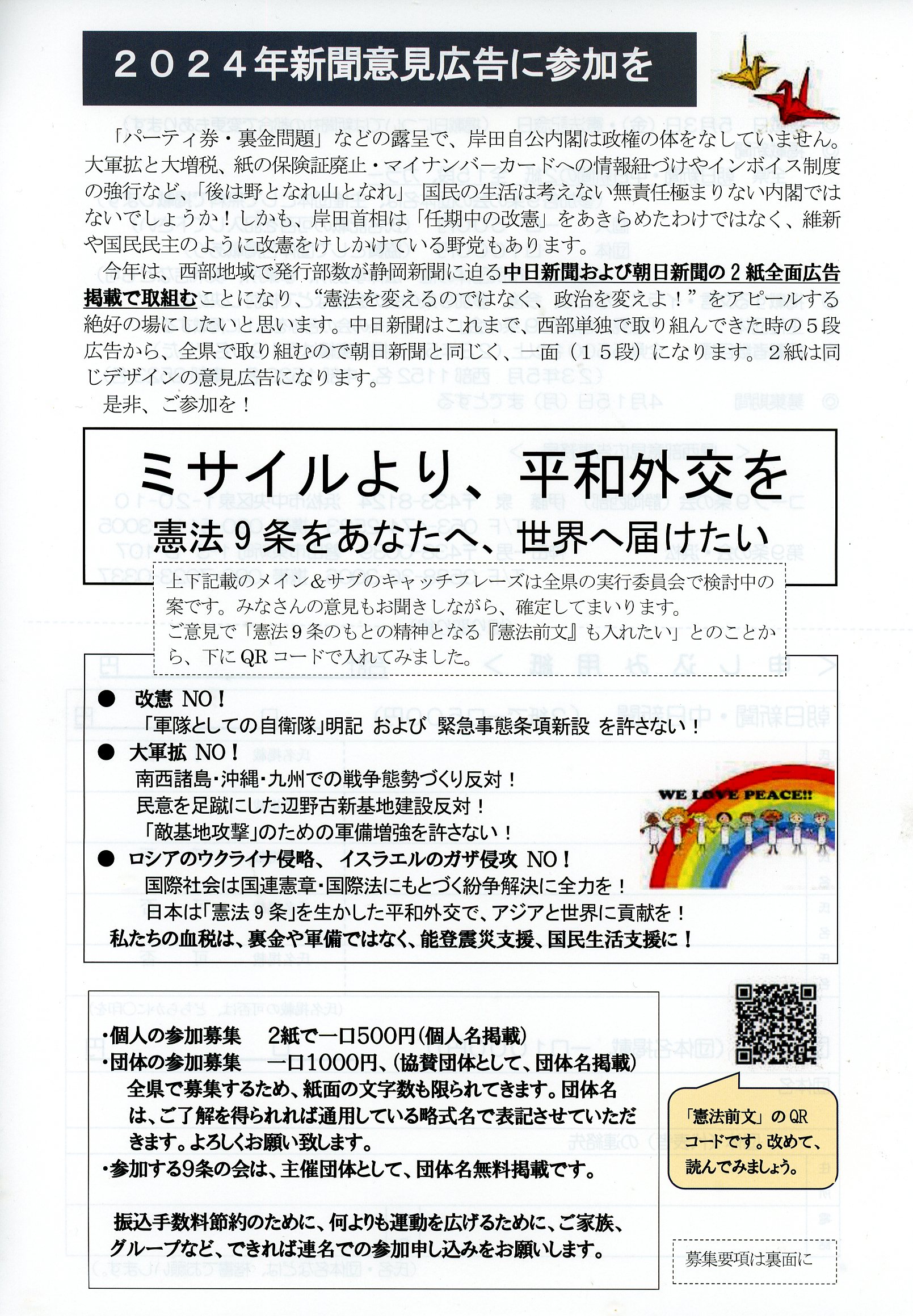静岡県 意見広告参加9条の会