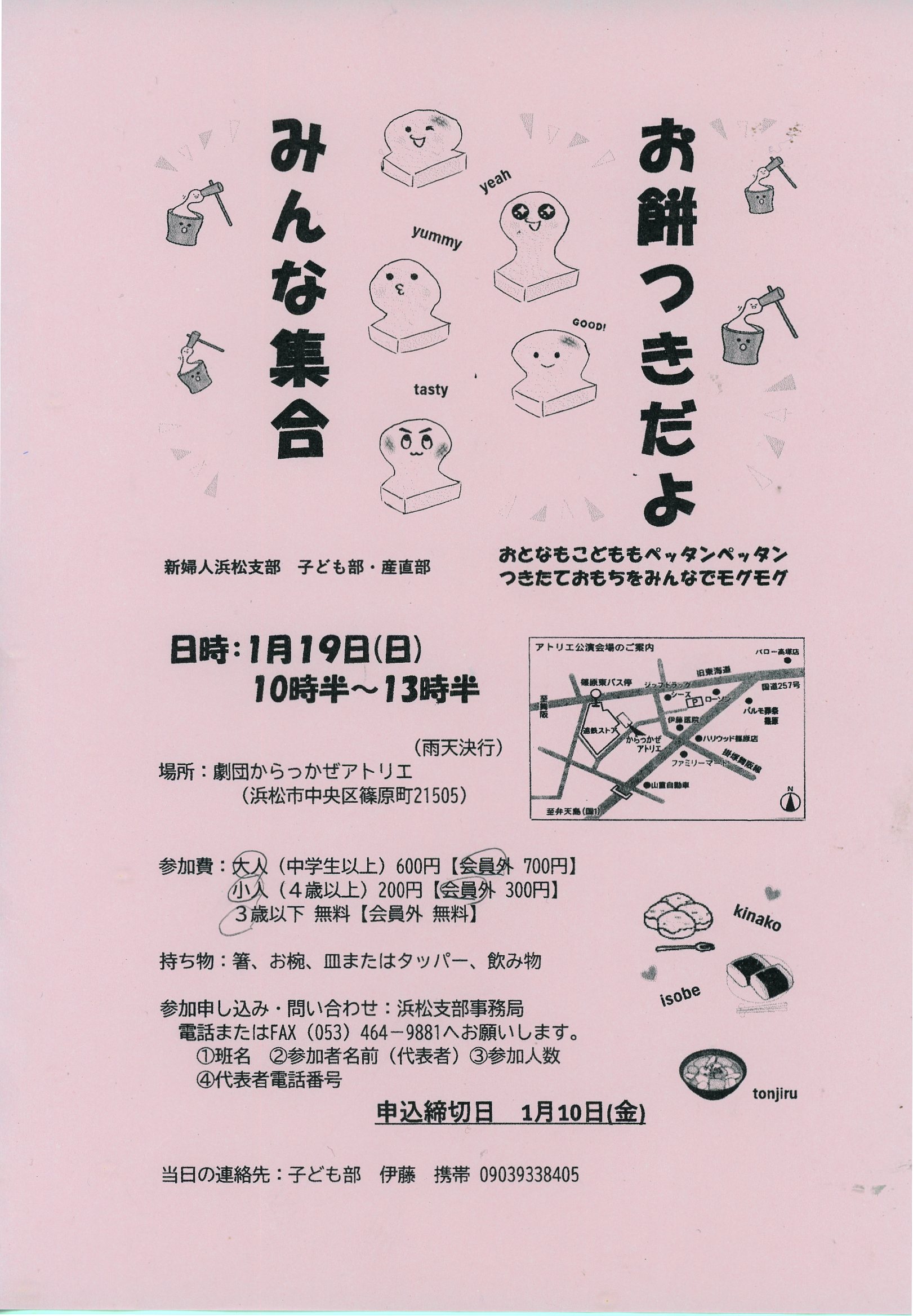 ・ 1/19(日)10:30~ 子ども部主催 餅つき 劇団からっかぜ