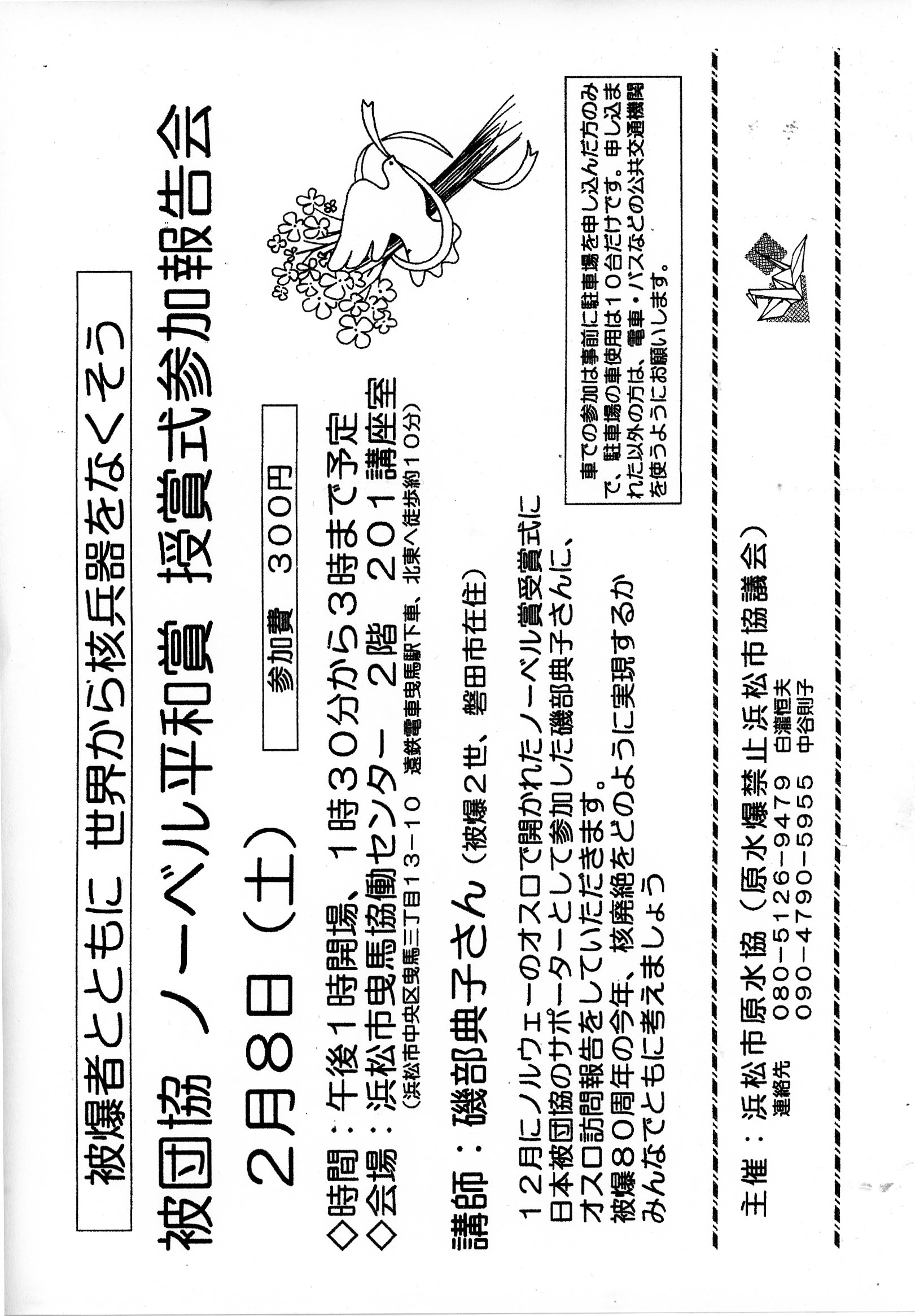 2月8日(土)13:30~ 曳馬協働センター 被団協 ノーベル平和賞 授賞式参加報告 講師:磯部典子 原水爆禁止浜松市協議会