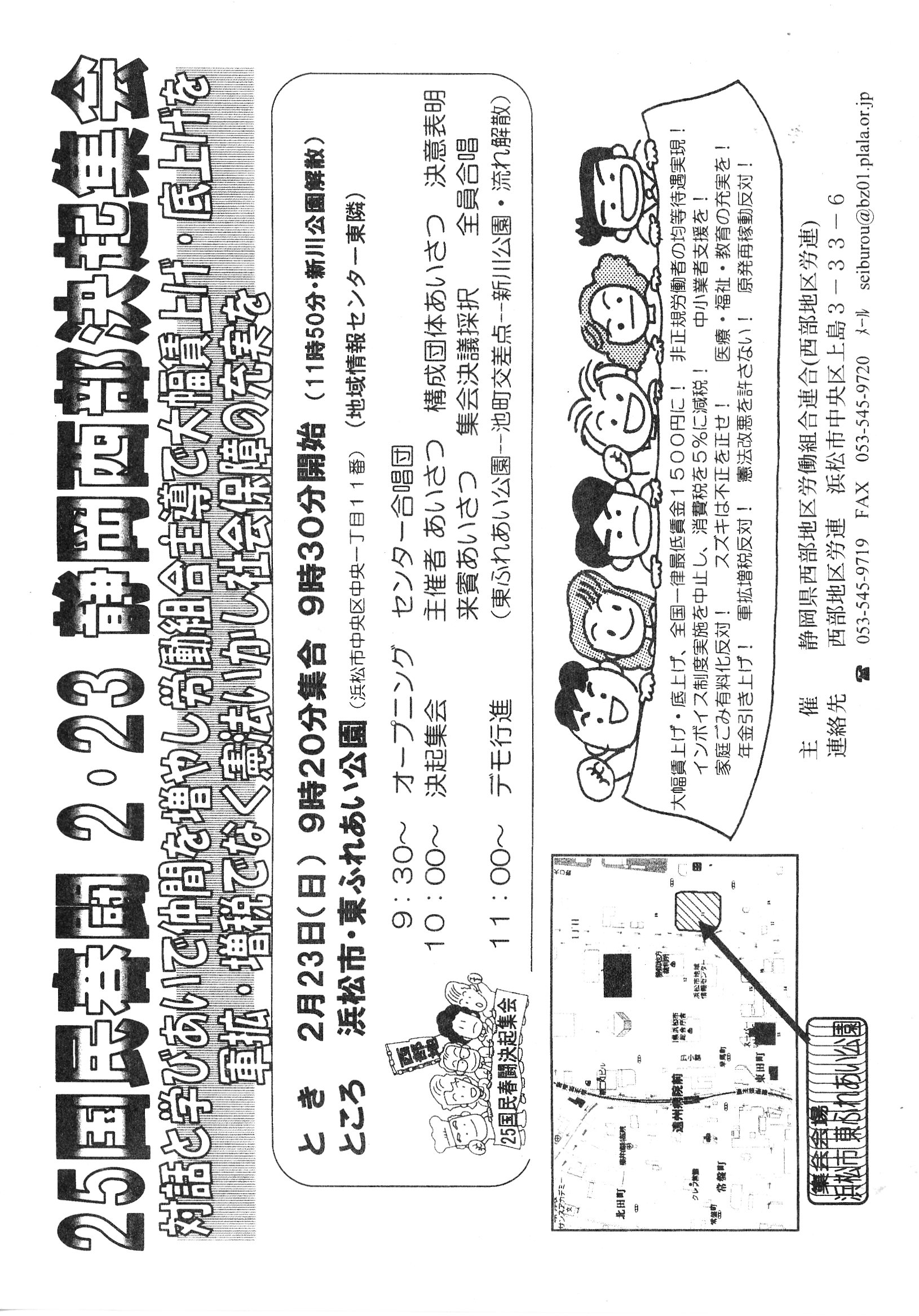 2月23日(日)9:30~ 浜松市・東ふれあい公園 25国民春闘2・23静岡西部決起集会 静岡県西部地区労働組合連合