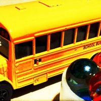 議事堂前に停められた抗議のバス