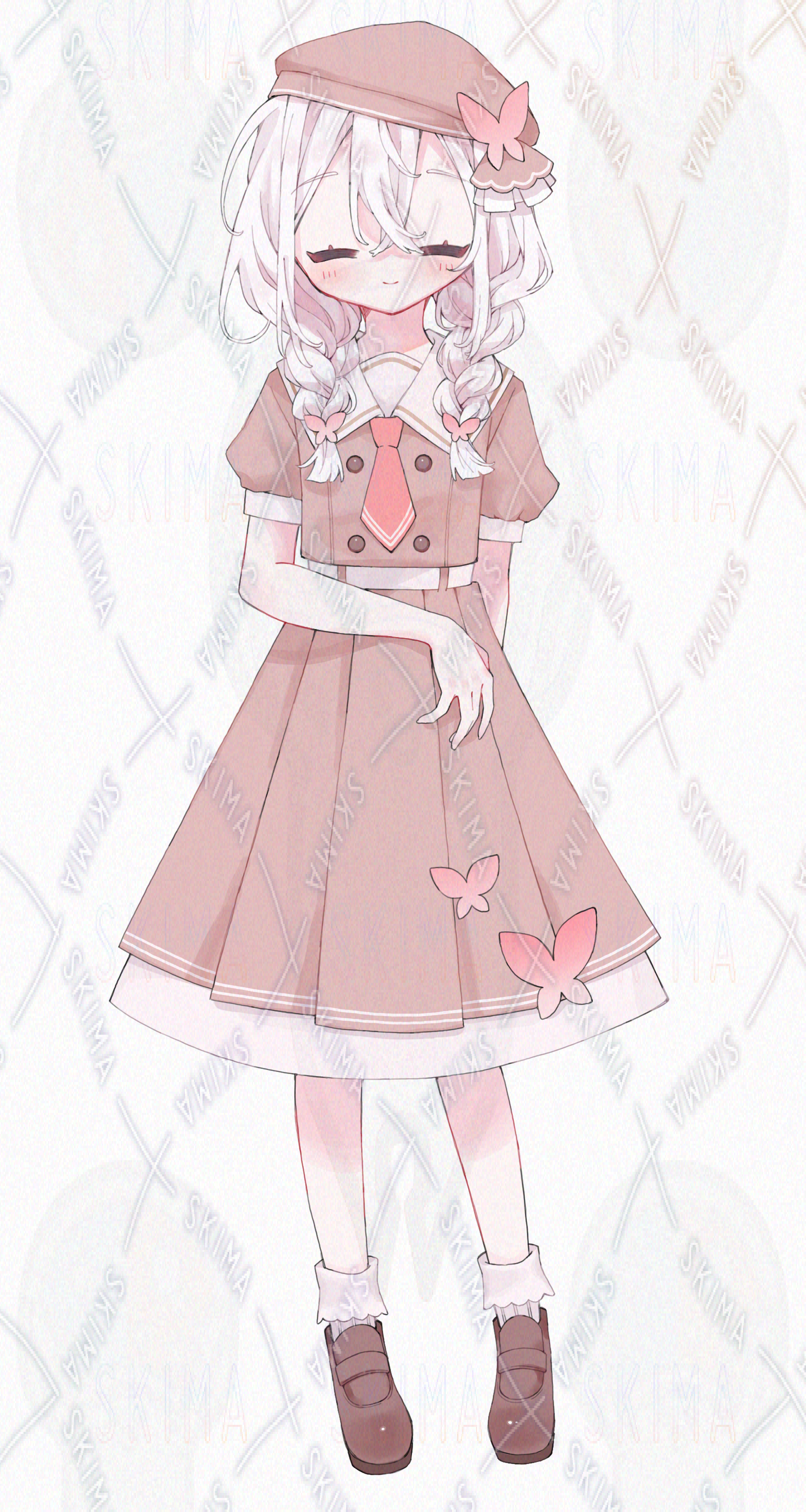 白髪赤目の制服風の少女【表情差分10種】