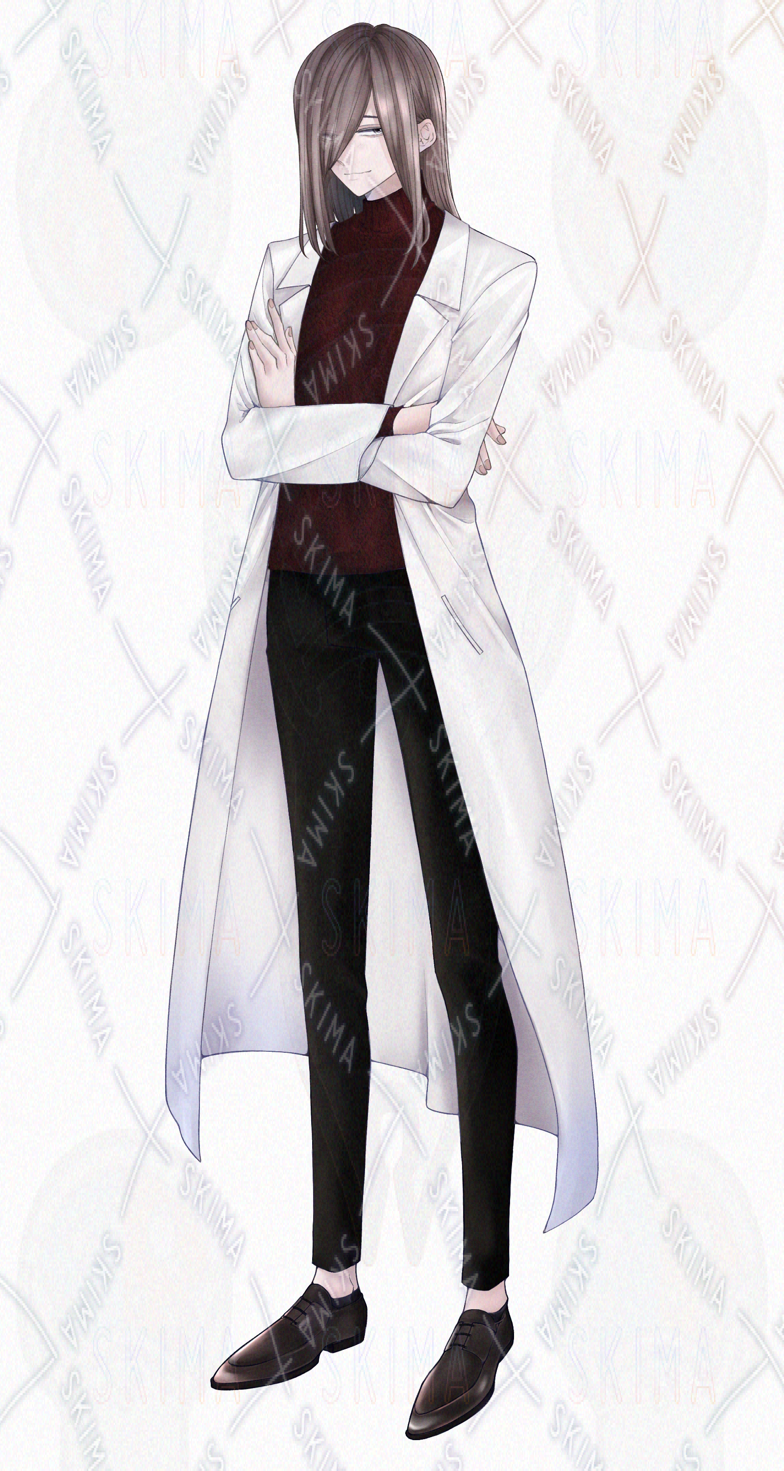 「マスクをした男性、白衣の男性、メカクレ、ダウナー系、神経質、潔癖症、教師、教諭、研究者、科学者、保健医」