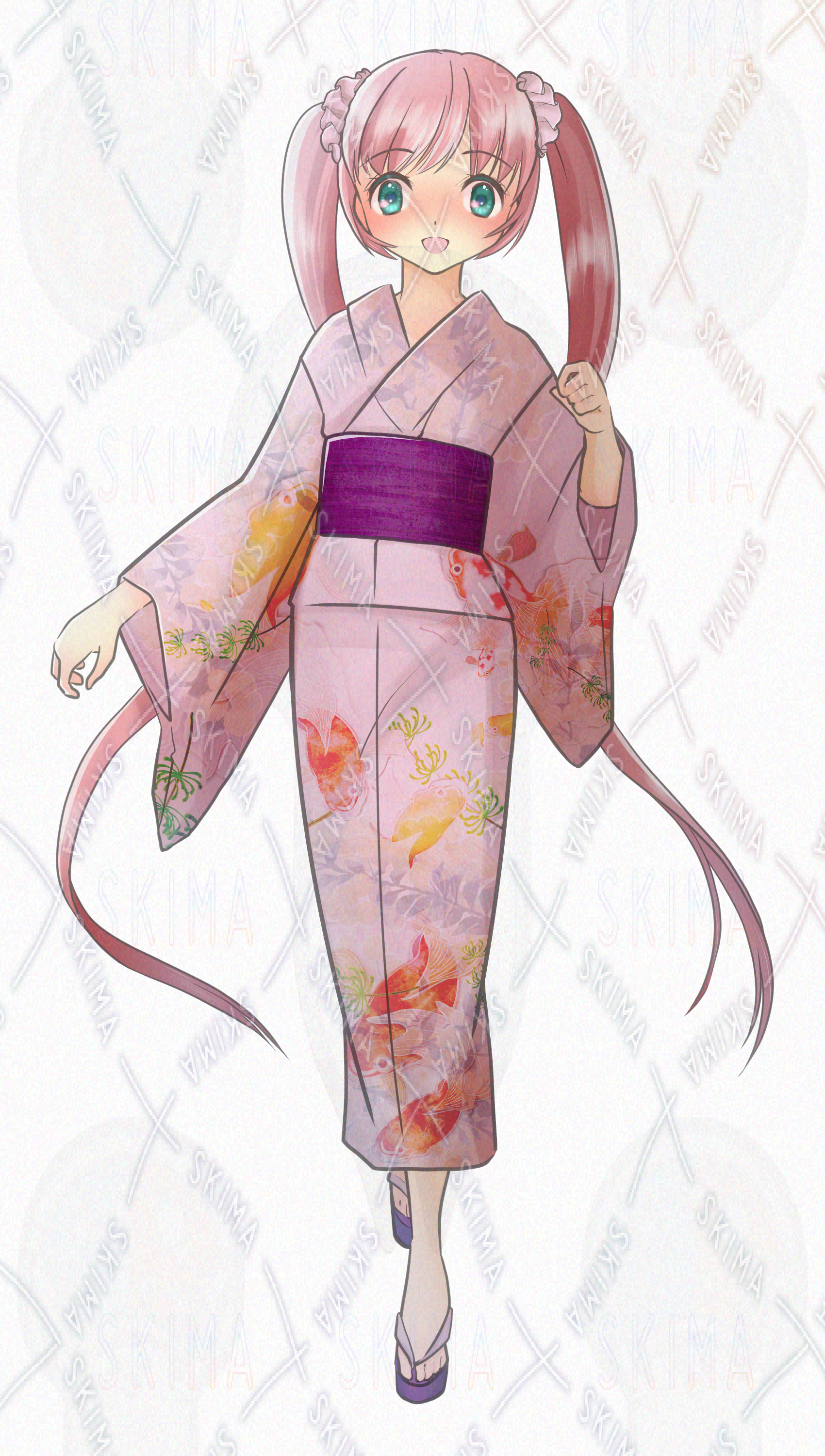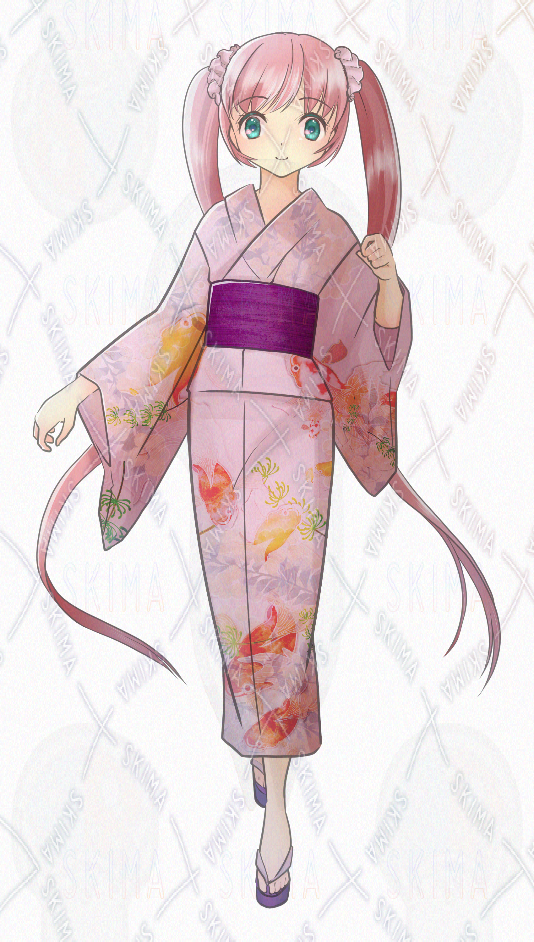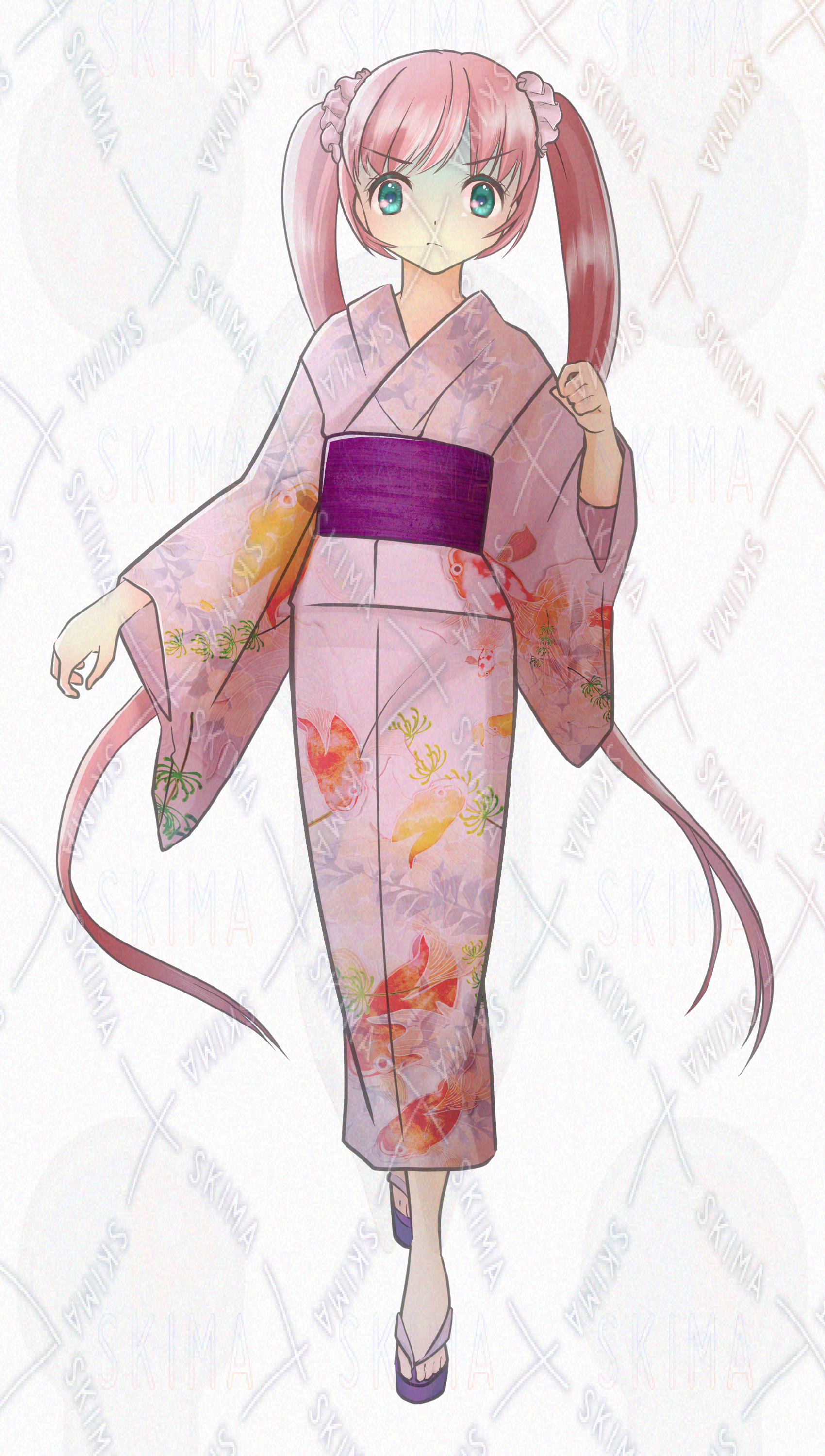 浴衣/和服/着物/女の子/女性/ロングヘア/ツインテール