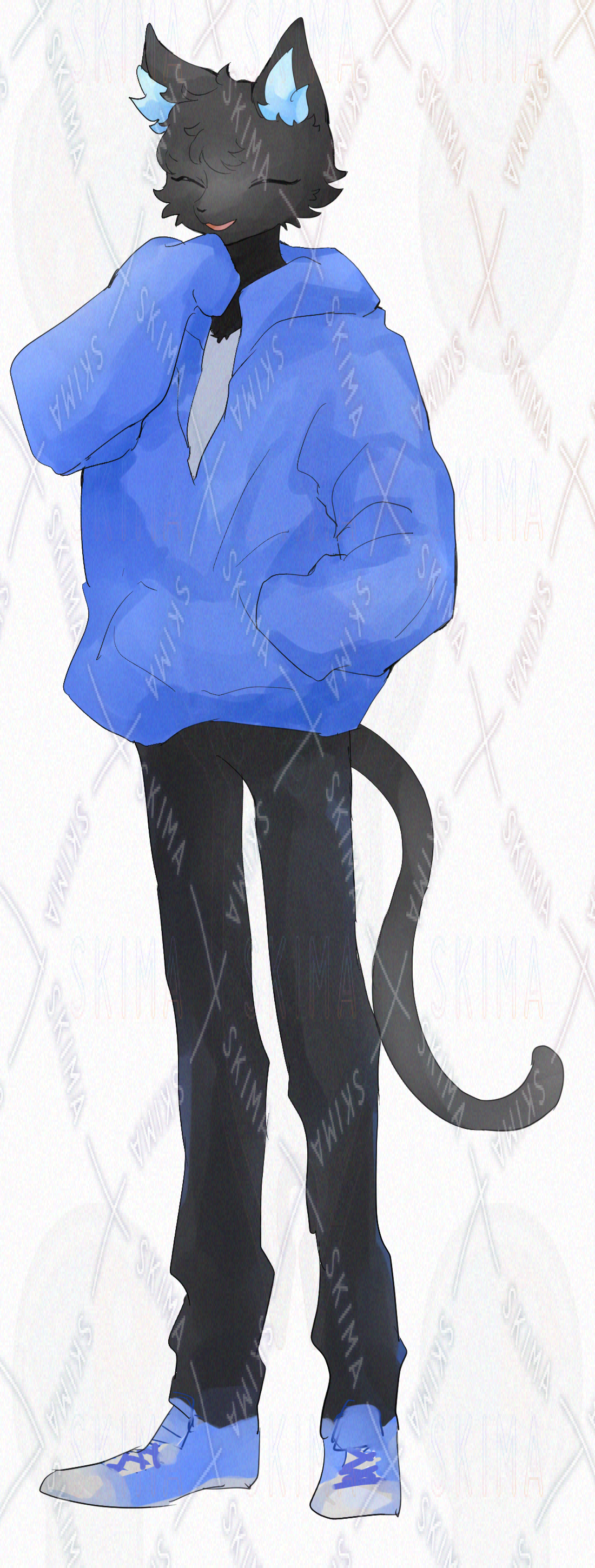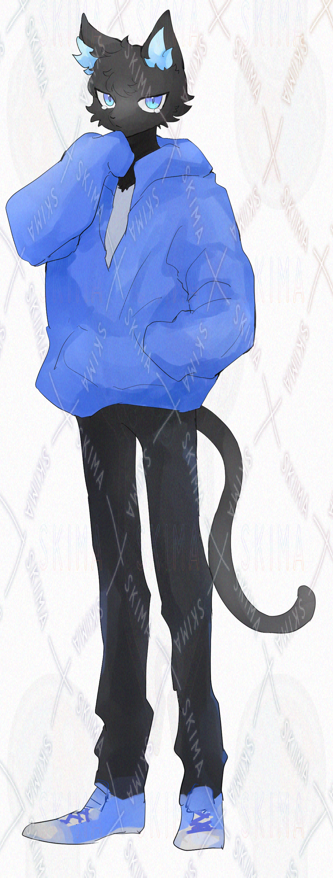 パーカーを着た黒猫の獣人の立ち絵になります。