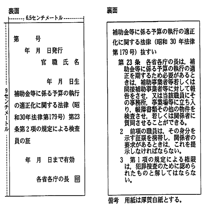 → 必ず「身分証明書(証票)」の提示を求めましょう。補助金等適正化法第23条第2項により、職員は証票を携帯・提示する義務があります。