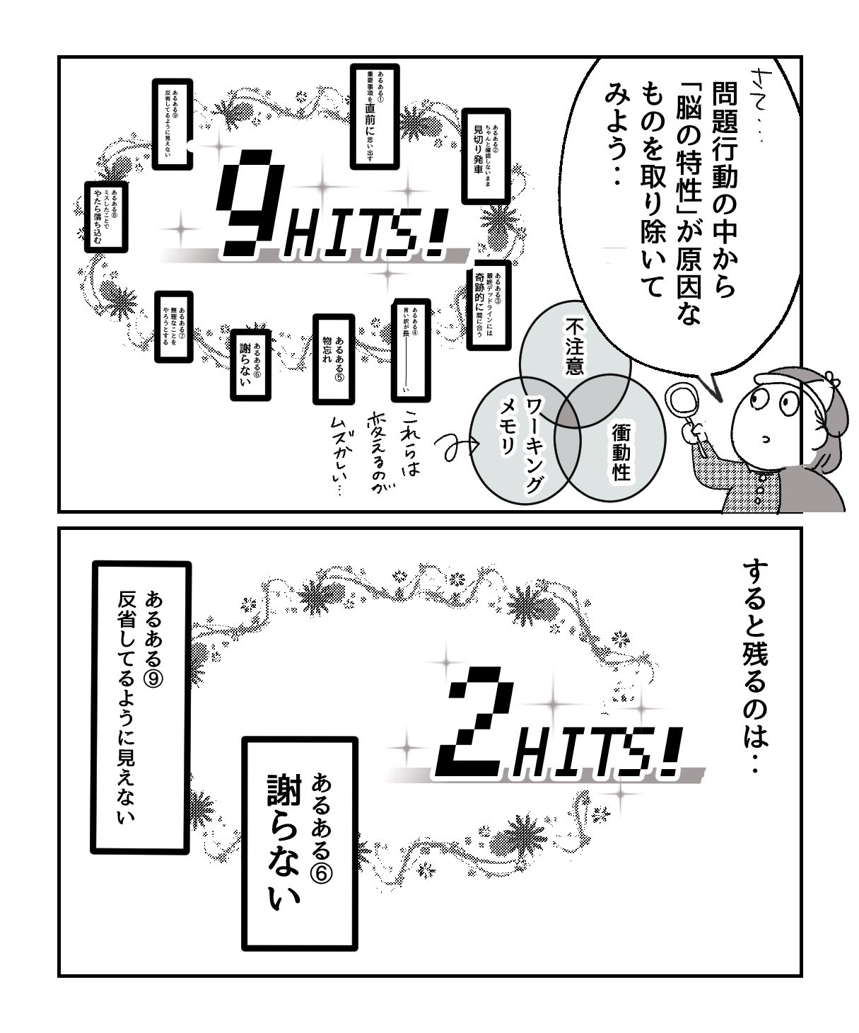 この漫画を見てると、自分に当てはまることが多々あって、自分の生きづらさの理由が少し見えた気がしました。自分はADHDって診断されたことないですけど、これを参考に他の人とのコミュニケーションをうまく築いていけたらなと思いました。