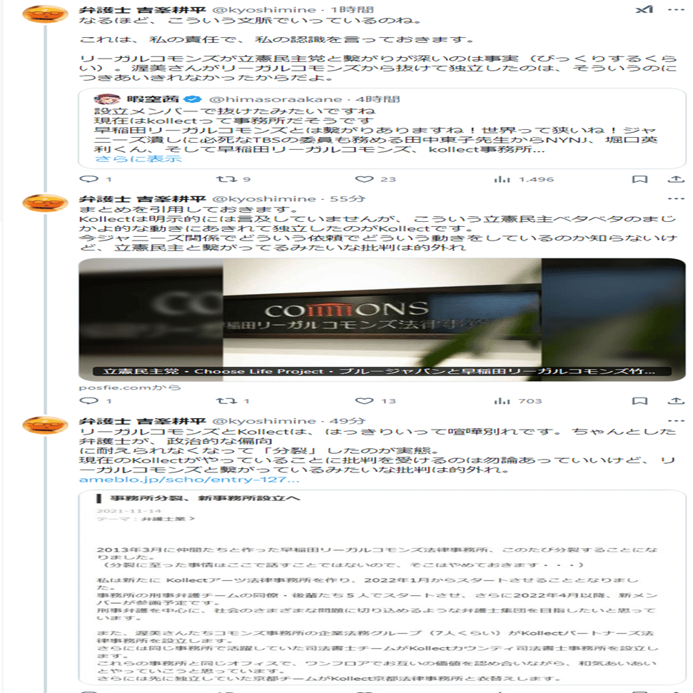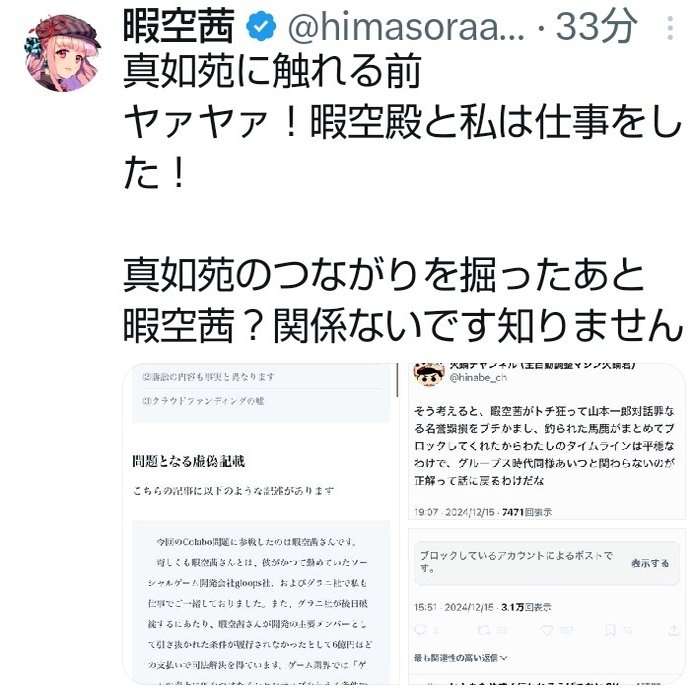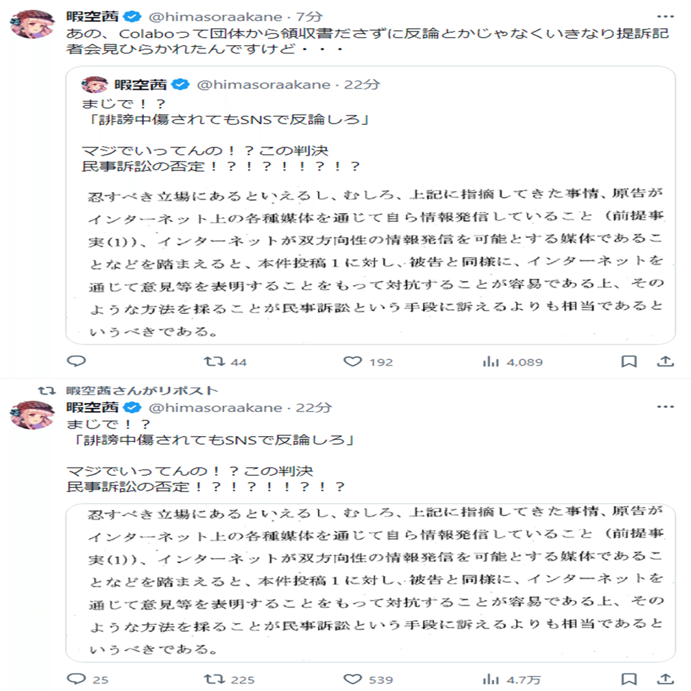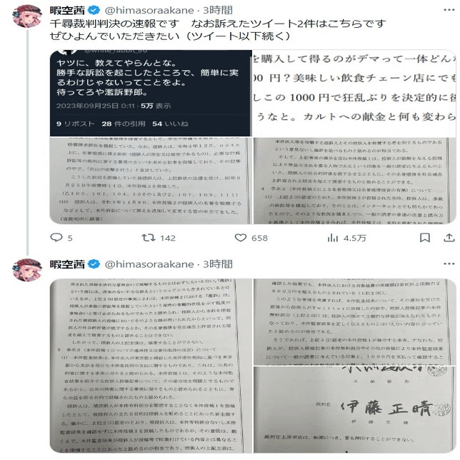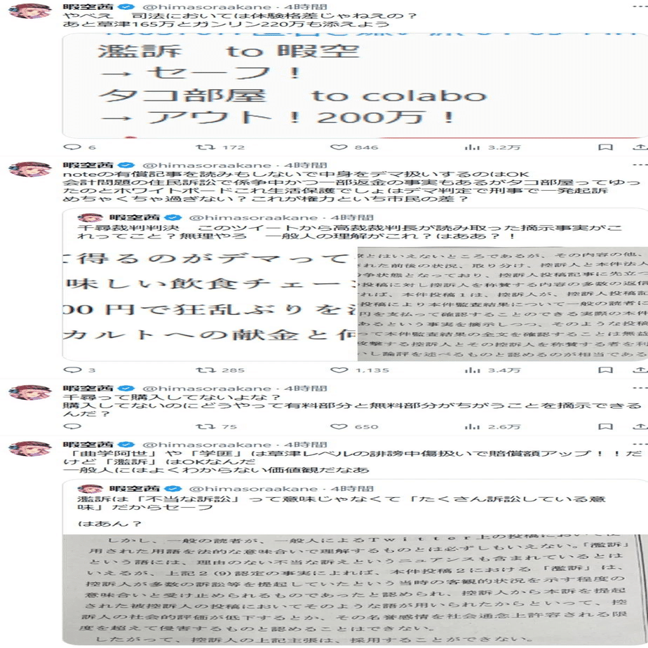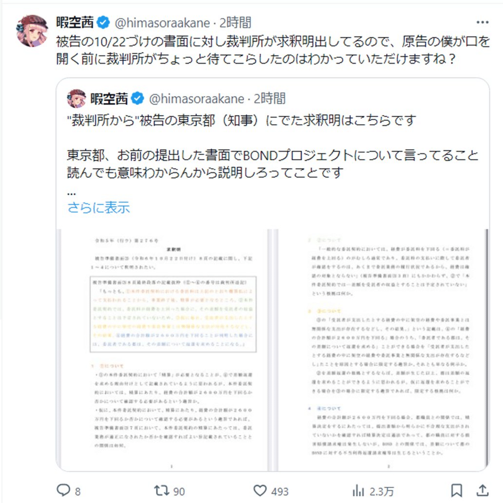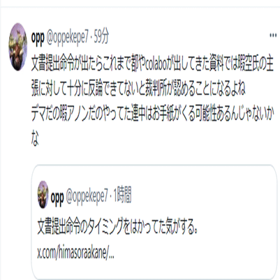 キリないのだけど、直近ならこれね。知識がない上に現実検討能力をとうに失っており、かつ弁護団も一体化してしまっているから、暇空の妄想の数珠繋ぎには歯止めがない。