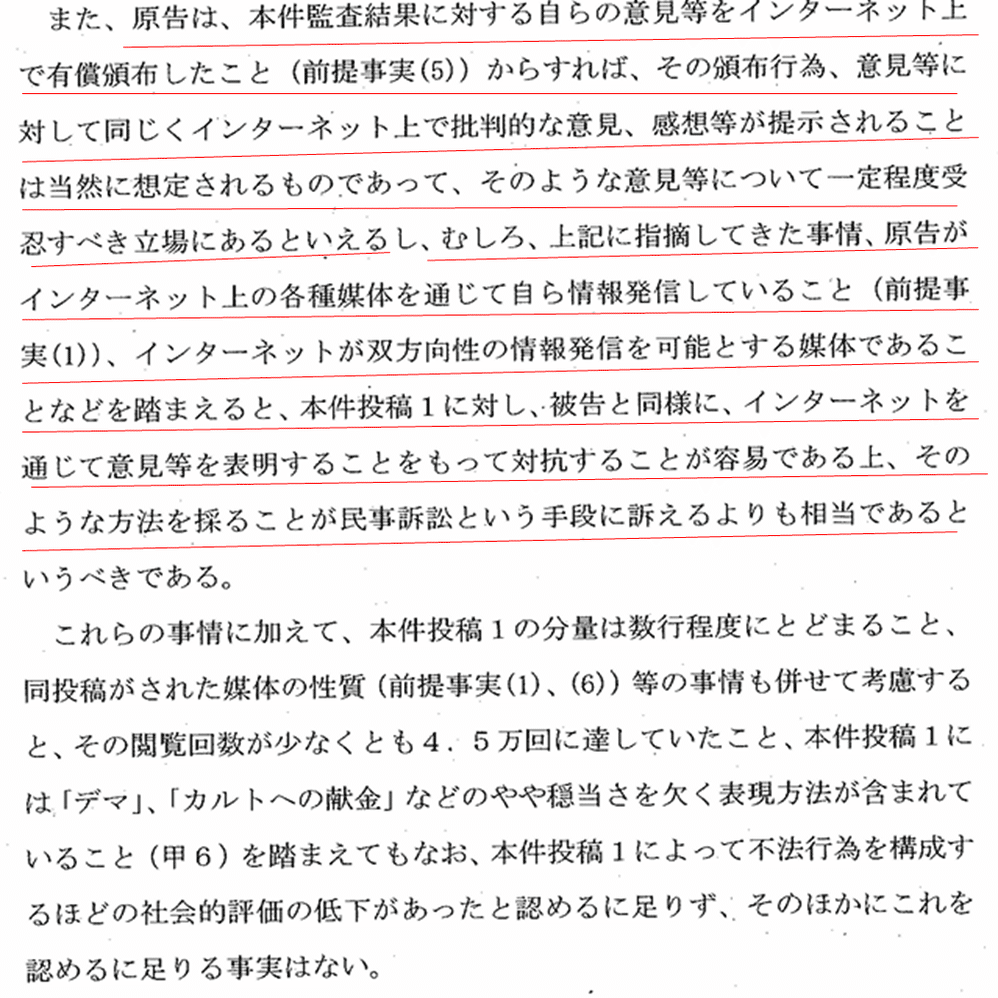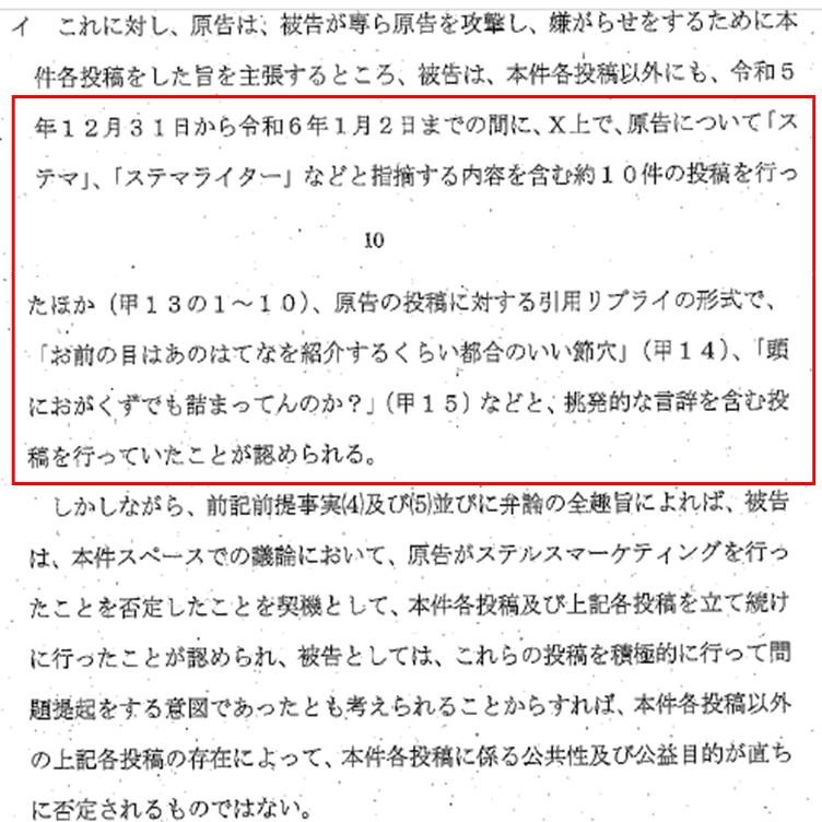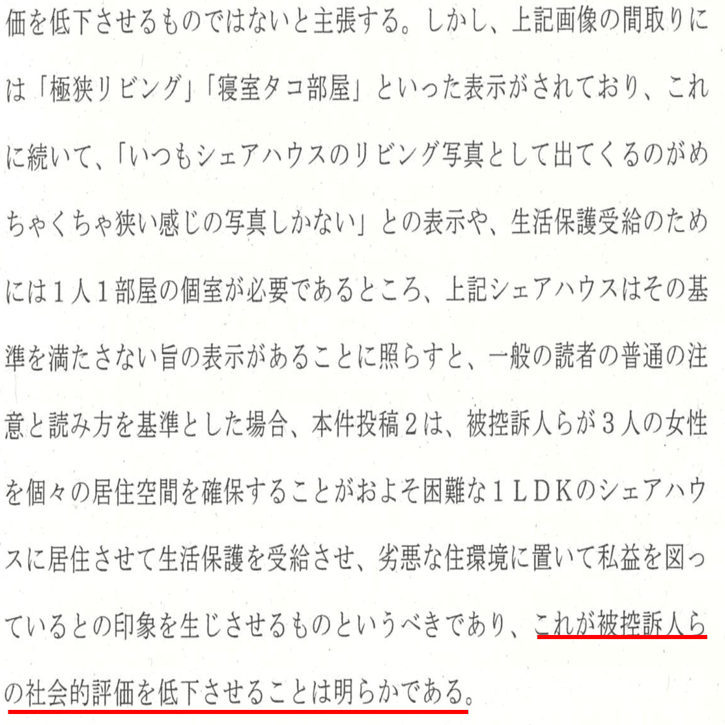 「リーガルハラスメント」だという暇空の主張も完全に否定され、むしろ提訴後の暇空の言動が反証とされている。その前の方でその関連事実が認定されている。この辺りは他の訴訟や事件処理に影響するはずだ。 pic.twitter.com/ADIpiNHWbg