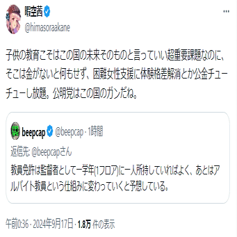 まるで頓珍漢なこと言っているし、困難女性支援も体験格差解消も予算規模は暇空が思っているより何桁も小さい。教育予算全体はもちろん、教員の増員、正規化、待遇改善に要する予算と比較できるようなものでは全くないよ。妄想以前に無知すぎる。