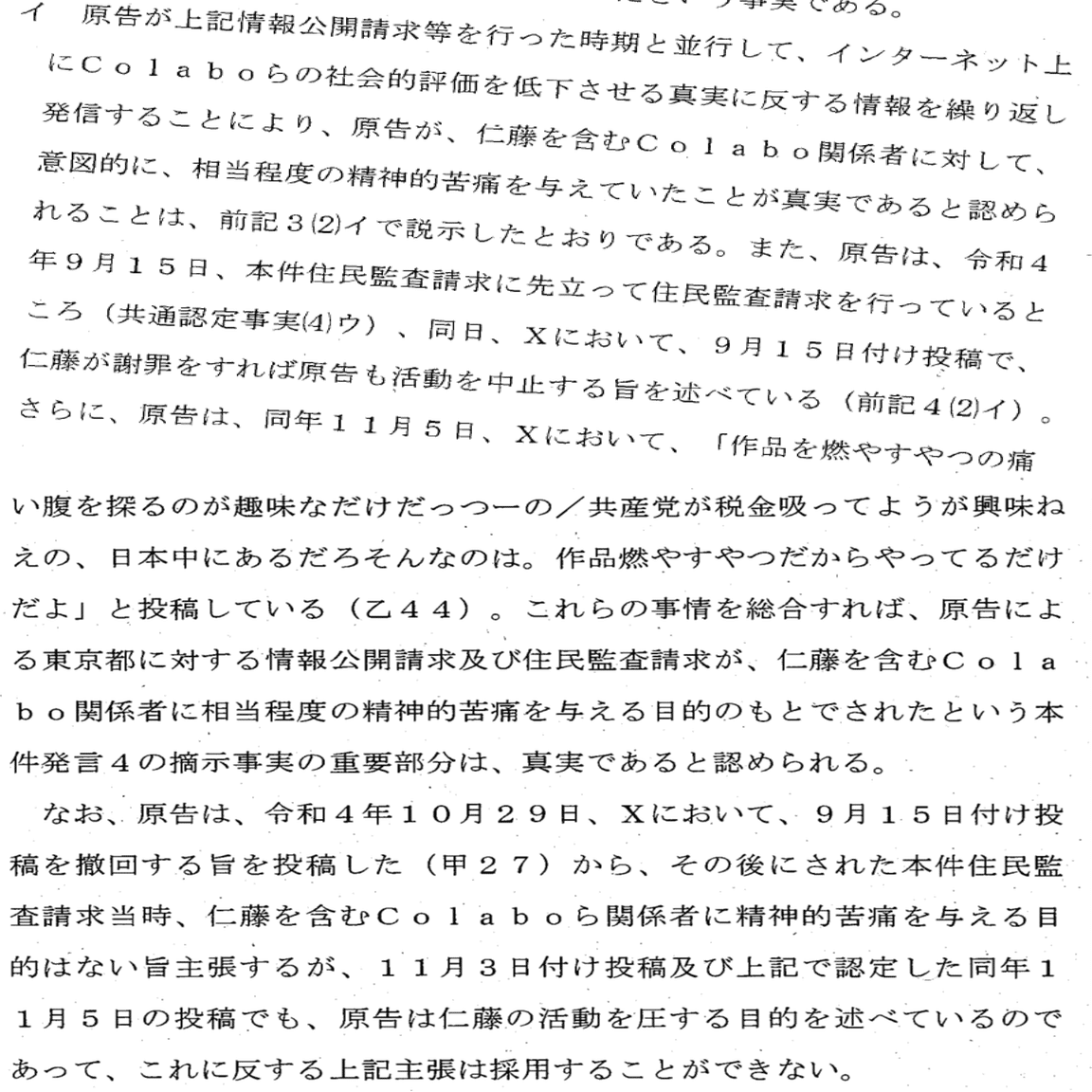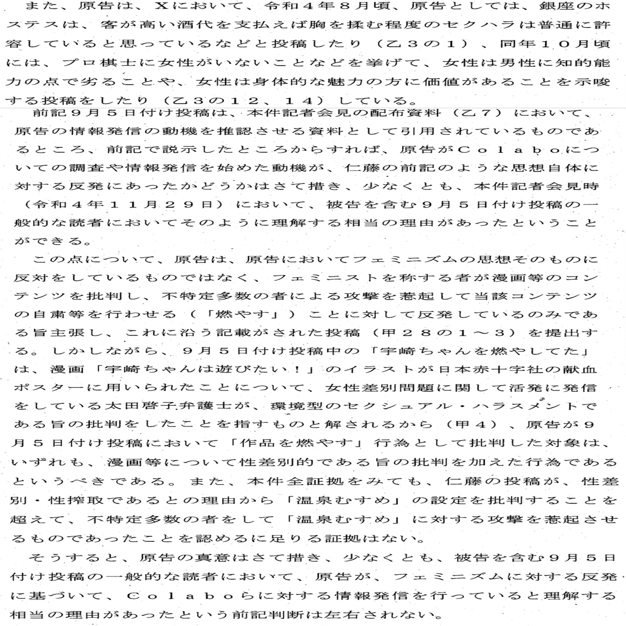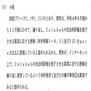 ほむらが発信した内容とそれに対する言い訳が大量に記載されていて吐き気がするのだが、要はほむらが仁藤さん・Colaboを叩きたいだけの思い込みでベラベラ喋ったことの言い訳が裁判所にバッサバッサと斬られた判決。