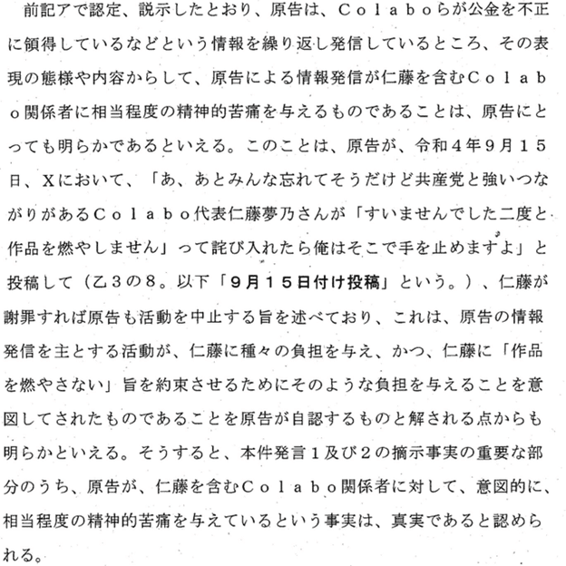 「大量脱税」等の被告の主張がデマと認定され、「ゆめにゃんのフェラ画像」などとして、私の写真(学園祭でフランクフルトを食べている)を「敢えて原告仁藤を性的に揶揄する意図」で「立場を貶める目的で投稿」し、「活動に支障が生じる」として被告に385万円の支払いと投稿の削除が命じられました。… https://t.co/JwihjltJFV pic.twitter.com/tP2xhm1xUT
