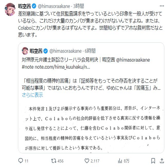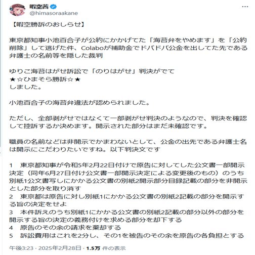 Colaboとしては当然ですが、Colabo関連裁判で6つ目の #暇空敗訴 です。 pic.twitter.com/alEw6RETK1