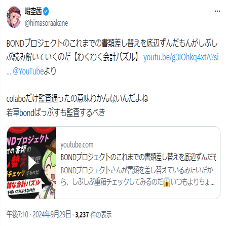 「怪しいと思う説得力のある理由は出したから、 答え合わせは誰かしてくれ」という能力が暇空にあるだって???全くないわ。呆れる。そういう連中がアンチ暇空で跳ね回ってるから厄介な状況になってるんだよ。