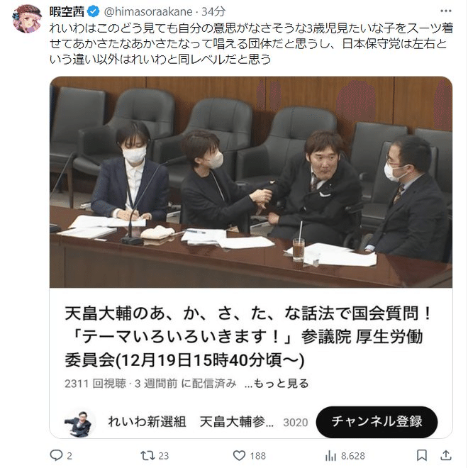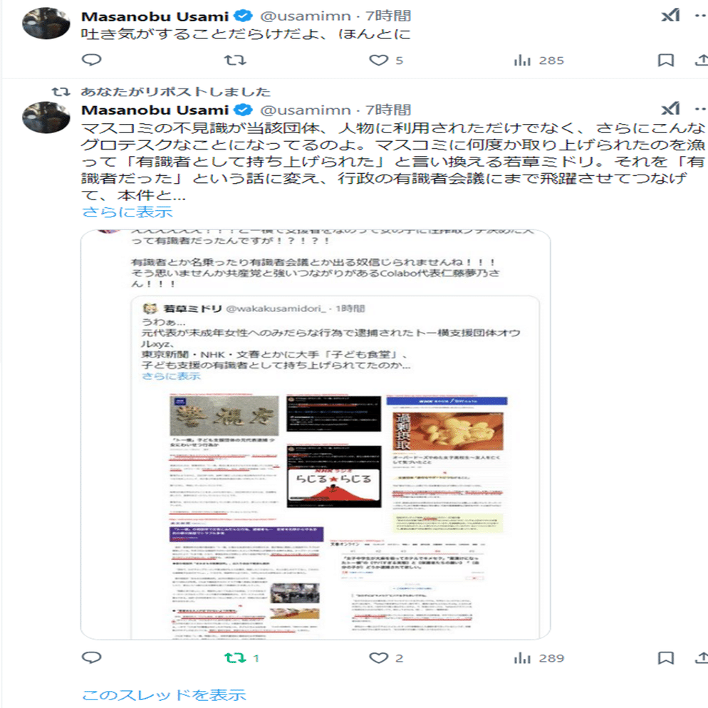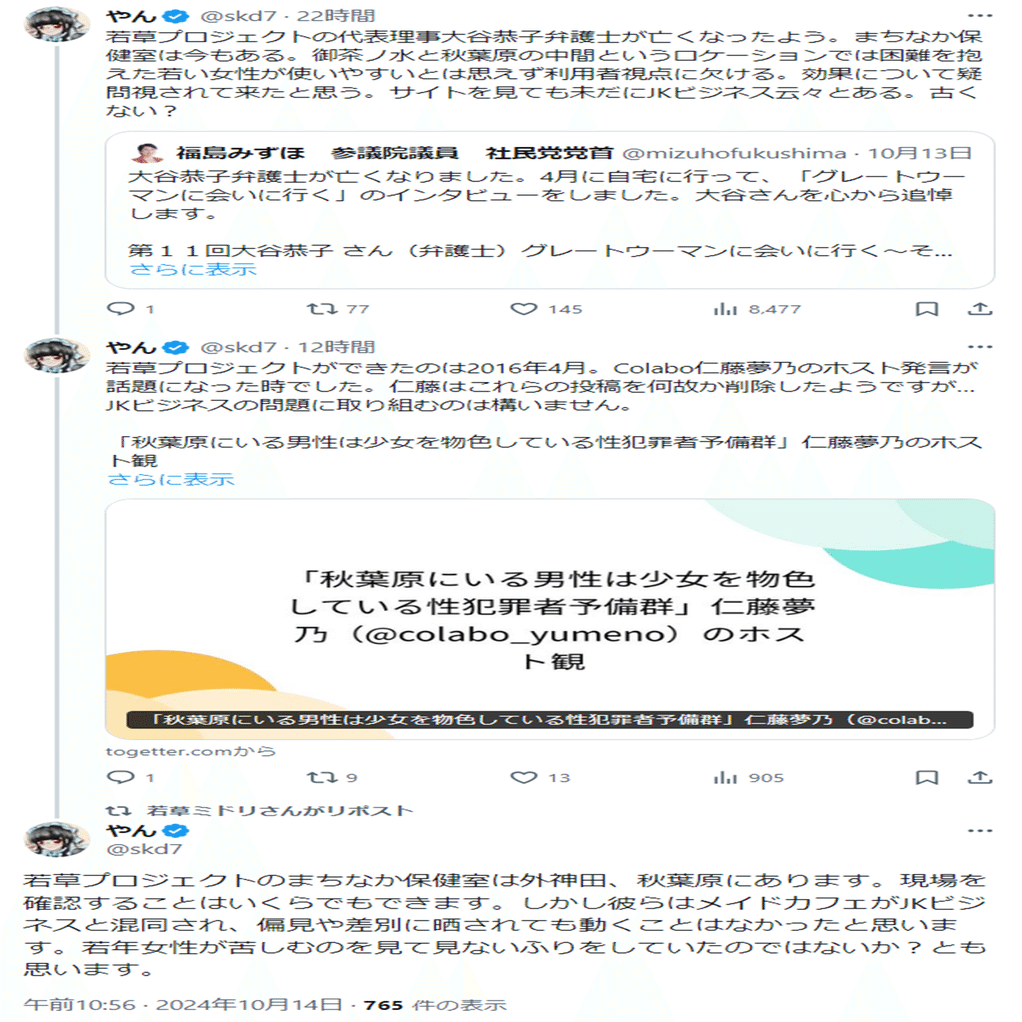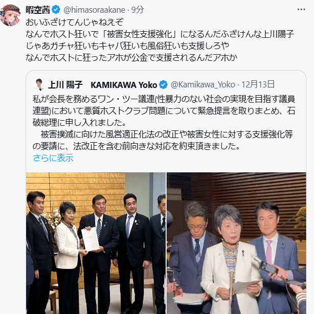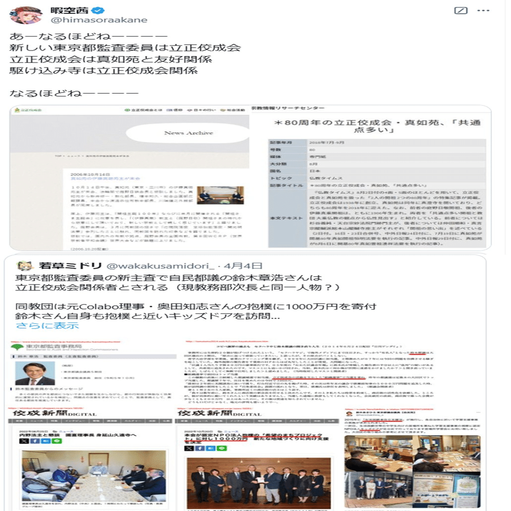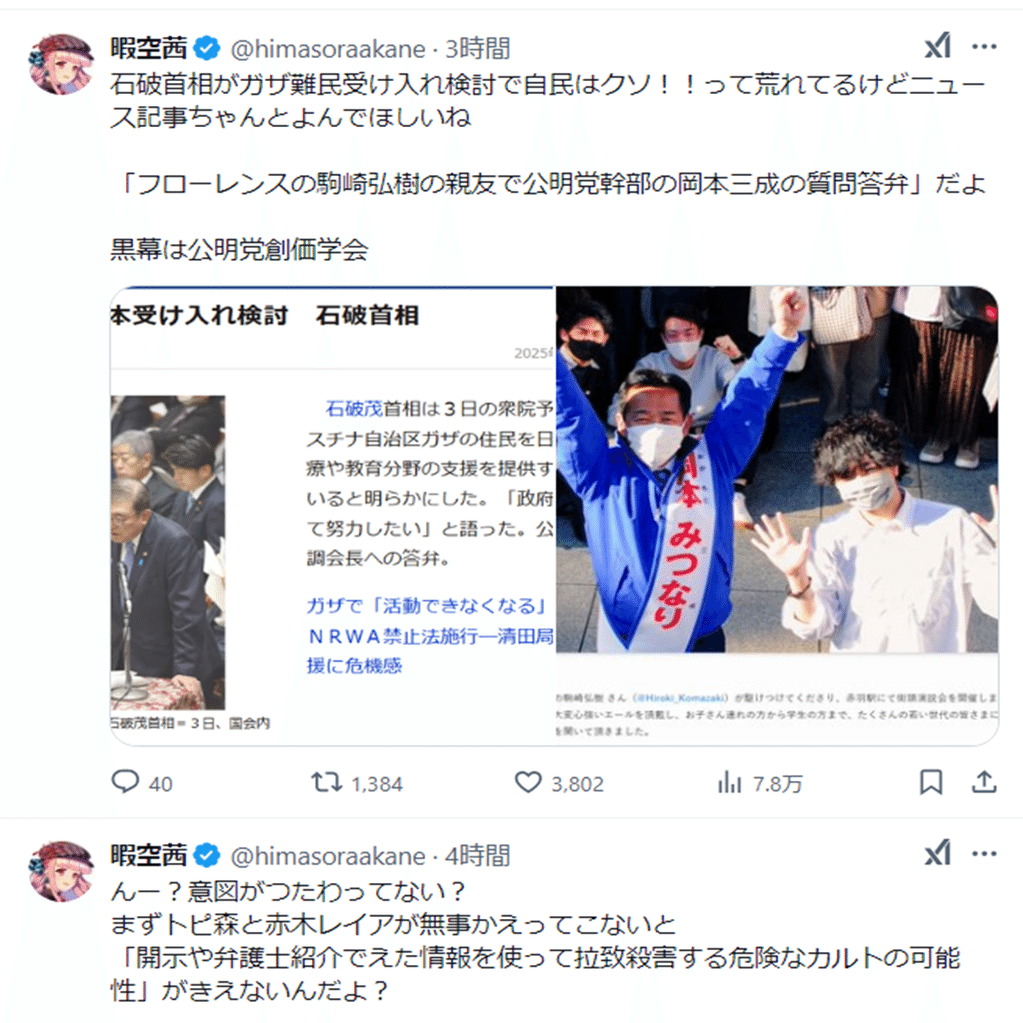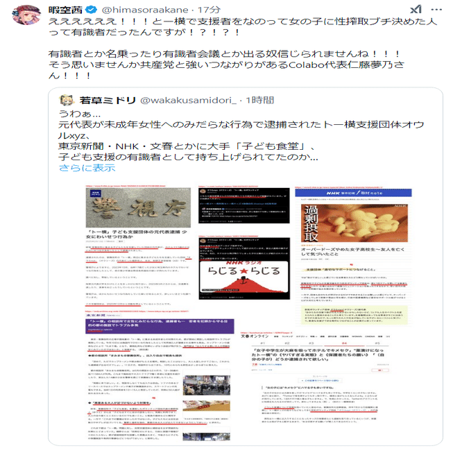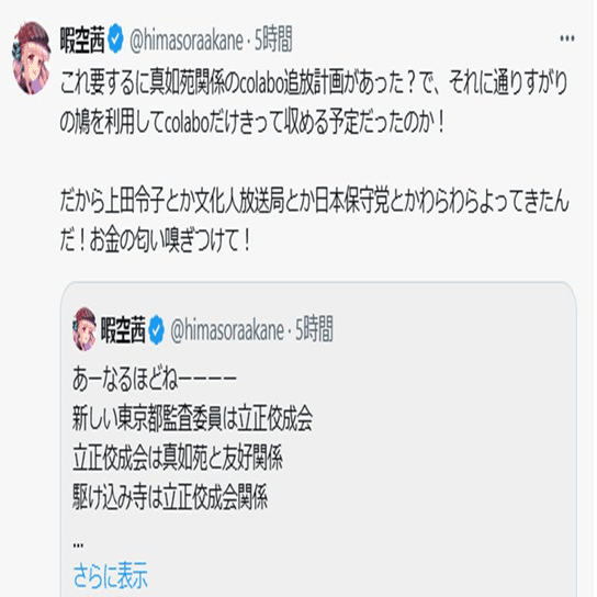 そして、保守派・ネトウヨ系で暇空らに直接的には同調しないものの一定部分を共有している者たちがいるからその通路からも現実に影響がもたらされている。
