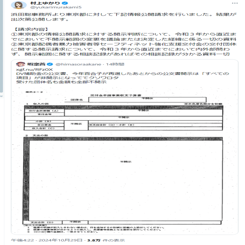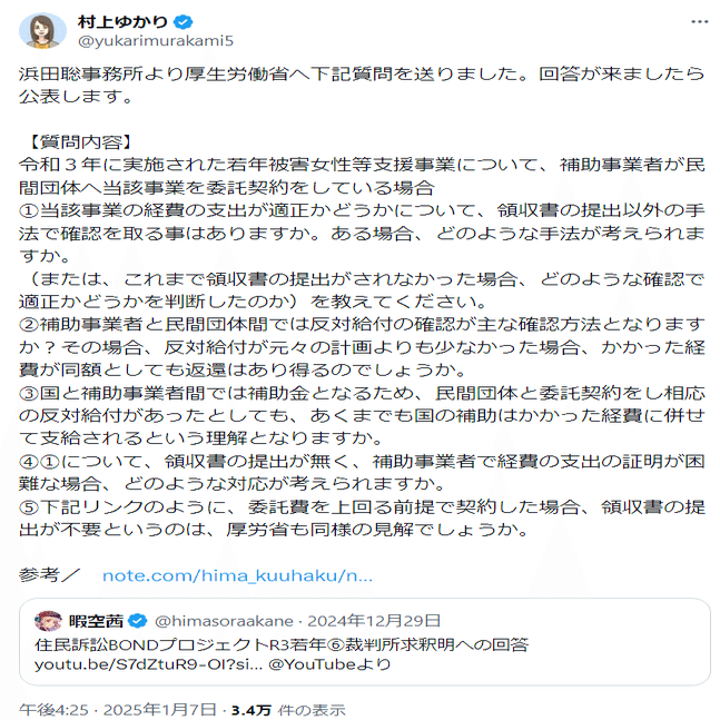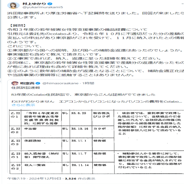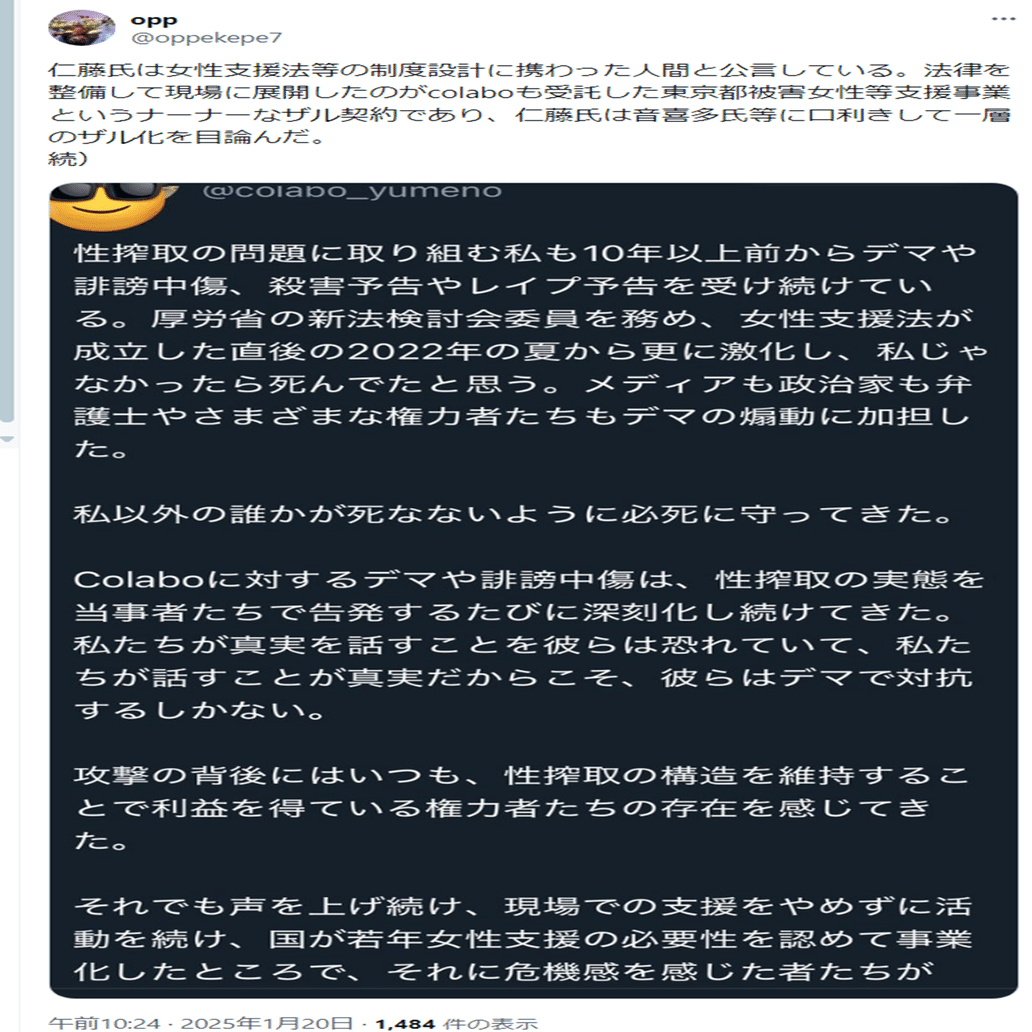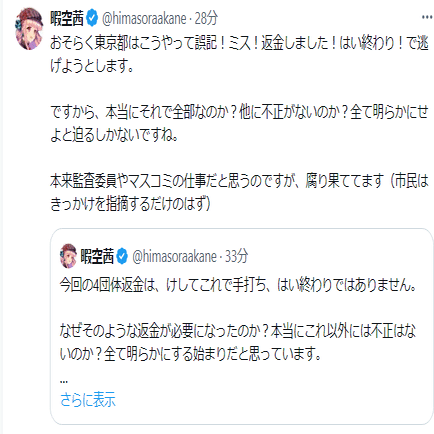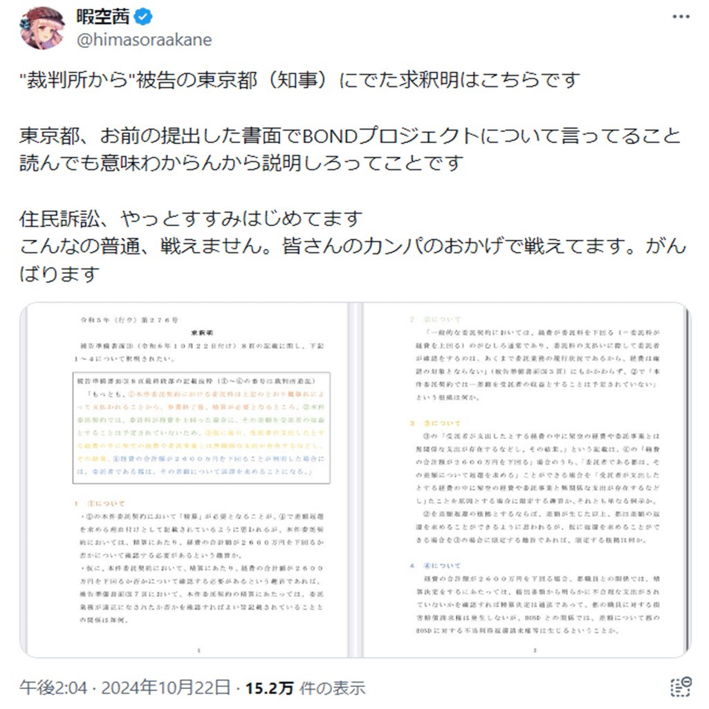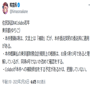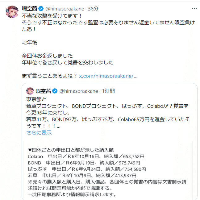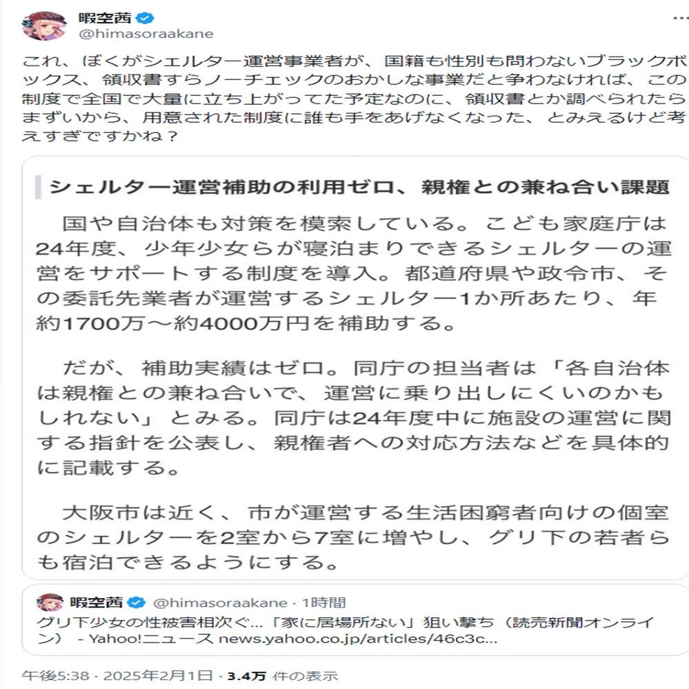 何度でも言うけど、暇空問題は全く終わっていなくて、どの団体も正常化と被害回復の緒にもついていなくて被害発生、影響、負担は現在進行形。もちろん、若年女性・少女など当事者にとっても。各官庁も住民訴訟、開示請求、問合せ・照会などへの対応で業務に支障が生じ続けている。そして、暇空らに倣ったような動き(支援・NPO叩き、開示請求等の濫用など)も広がっている。暇空の敗戦処理のようなフェーズでは全くないんだよ。