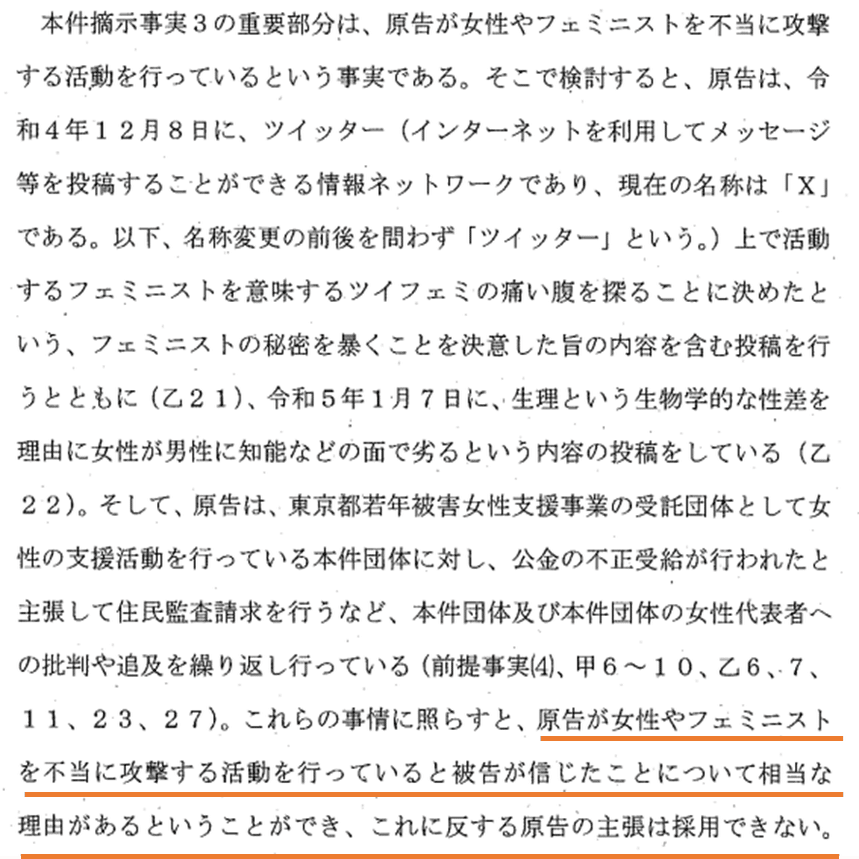 なるほど、判決はほむらの名誉毀損行為を認定したことはもちろん、Colabo・仁藤さん「の実施する支援活動にも支障を生じさせるもの」と認定し、損害額の算定において考慮した訳だ。この部分も重要。もちろん、それでもこの賠償額というのは現実の被害回復には到底足りない訳で、構造的な問題。とは言え、ほむら、暇空らの加害否認のロジックが裁判でも全く通用しないことが改めて示された。