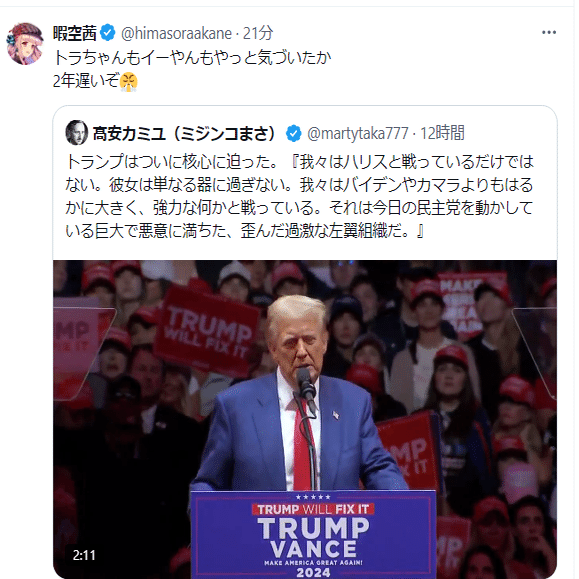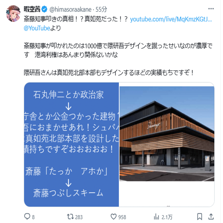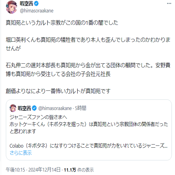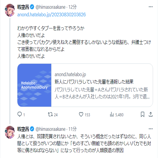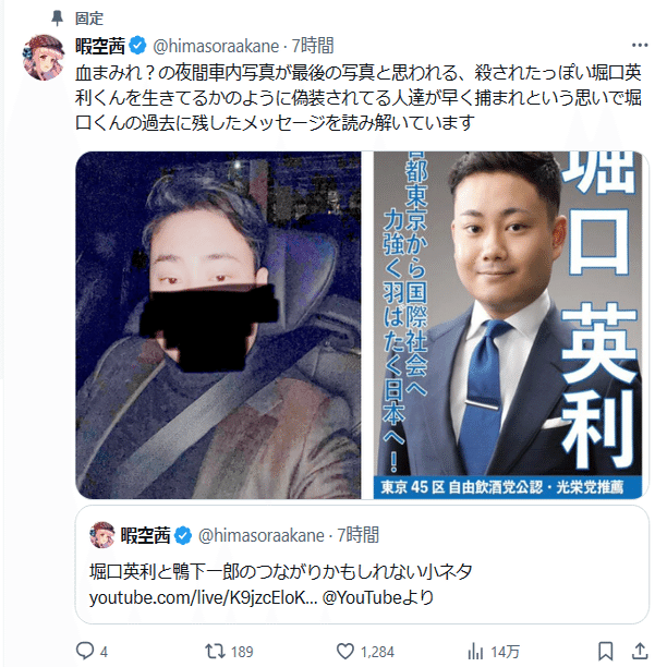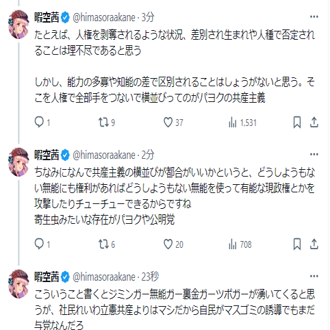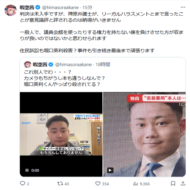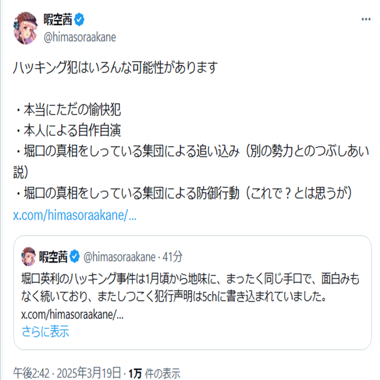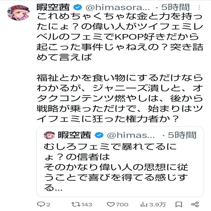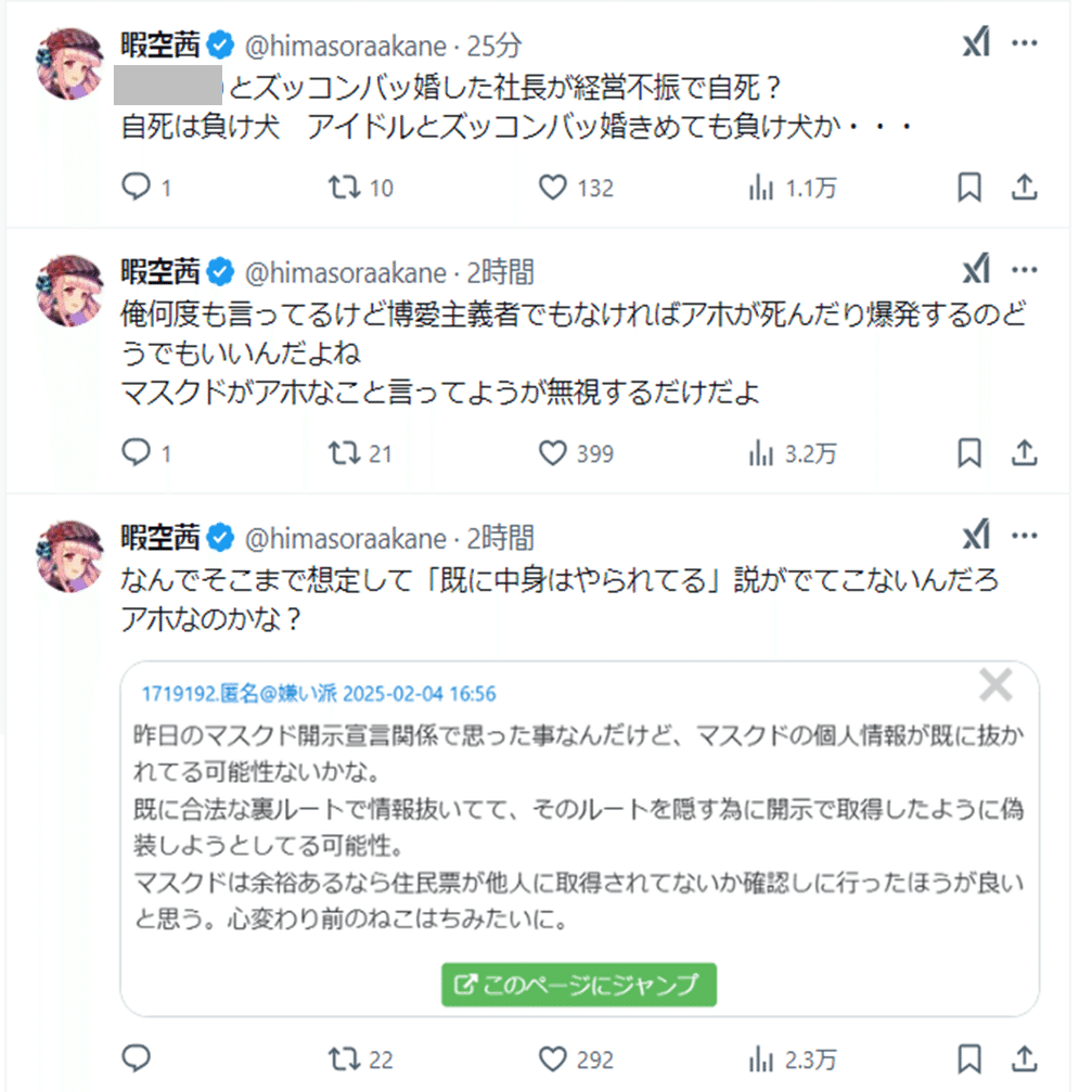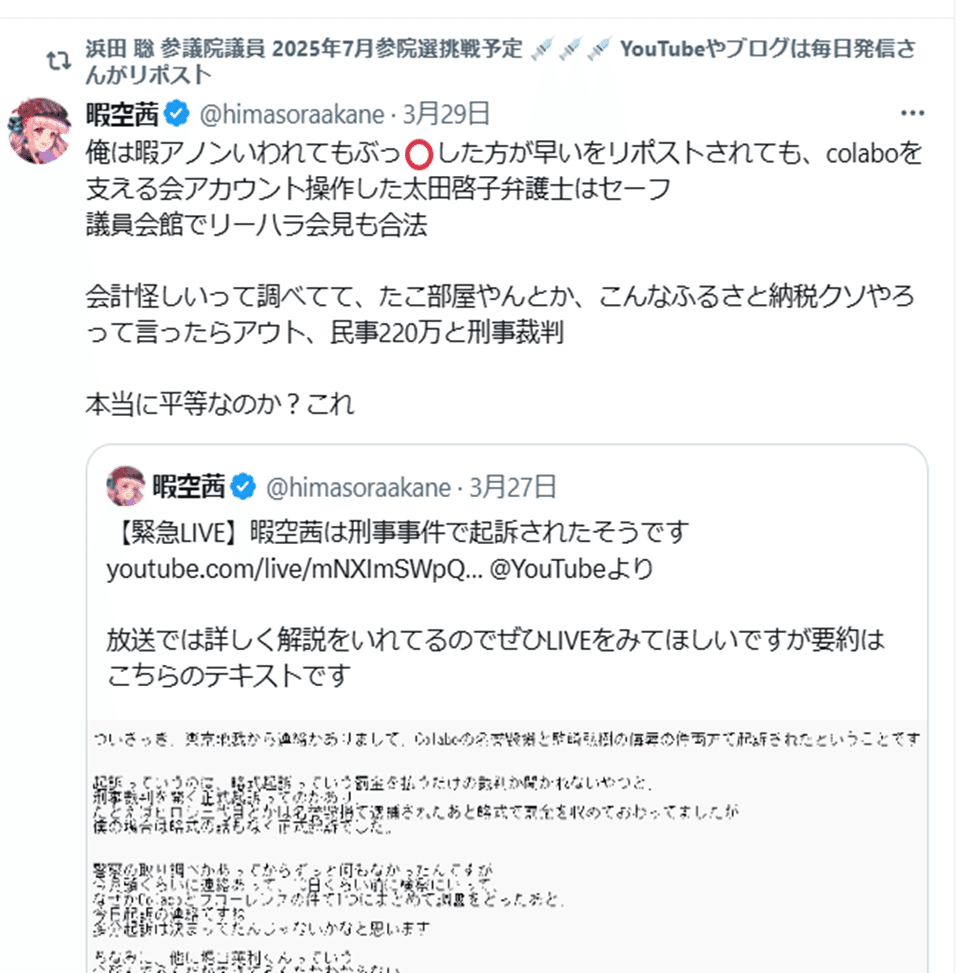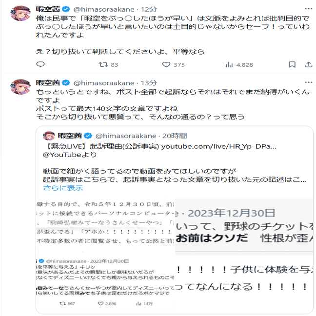 暇空はこれで延々デマと誹謗中傷を垂れ流し続けているからね、今日も。