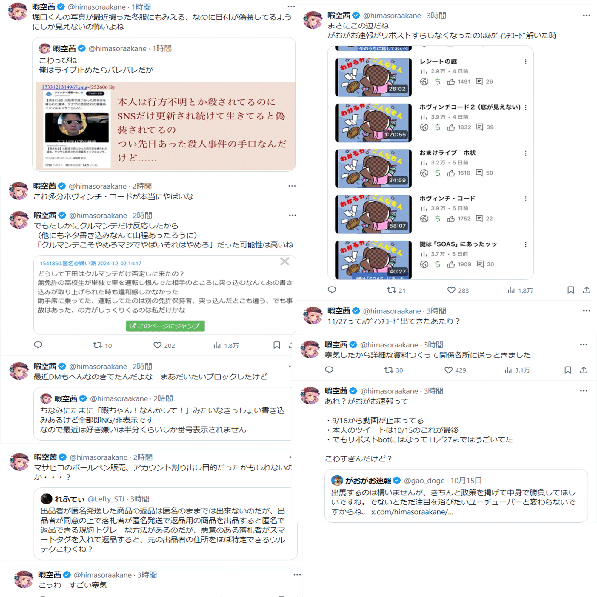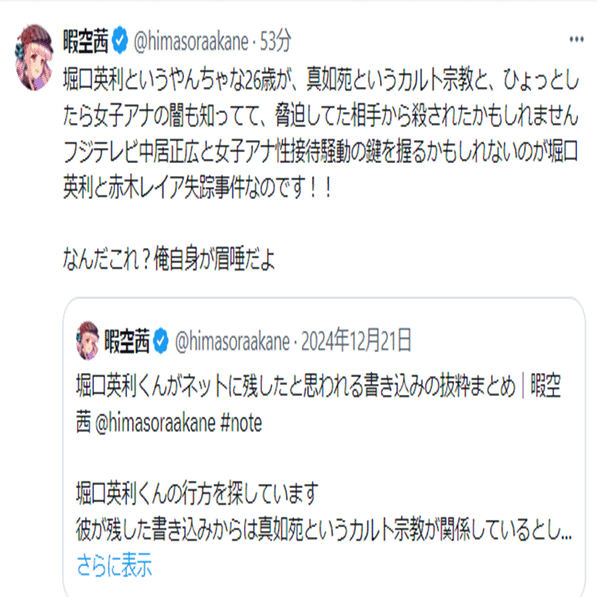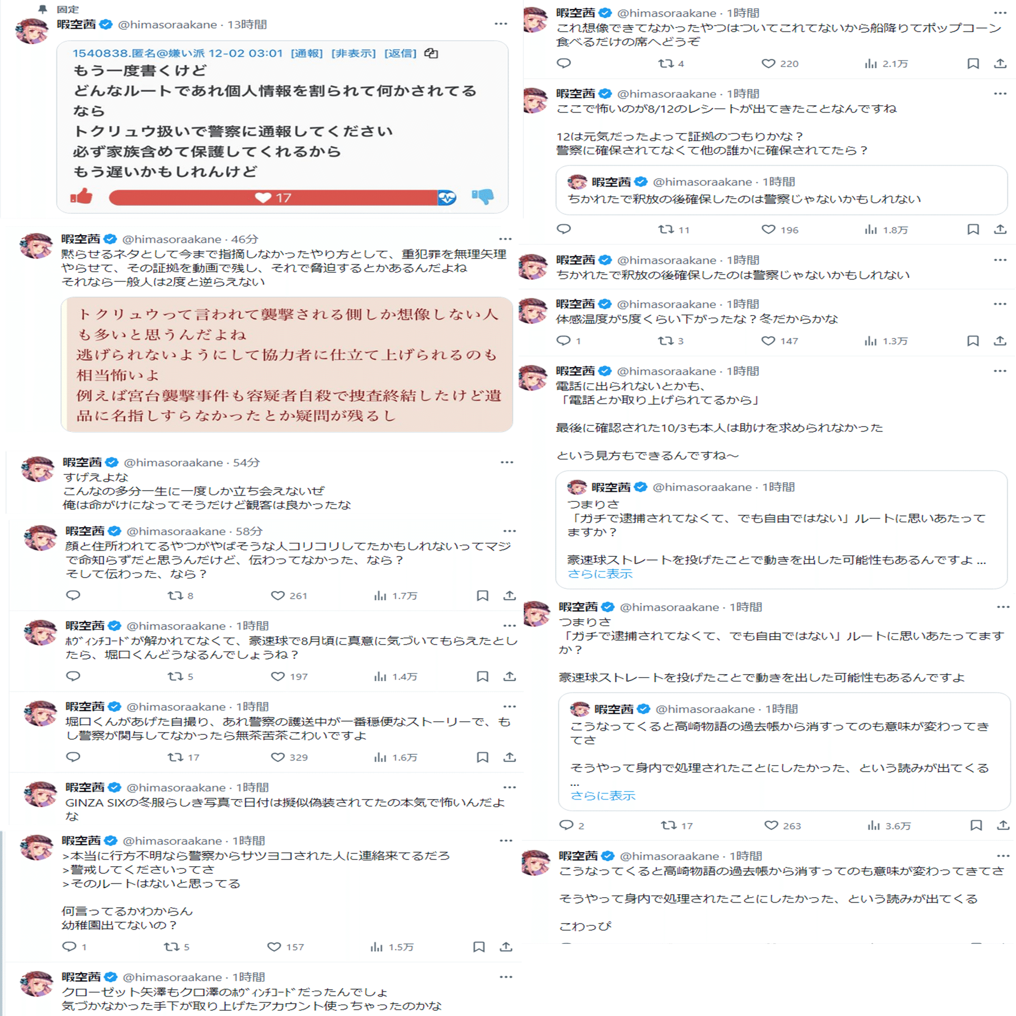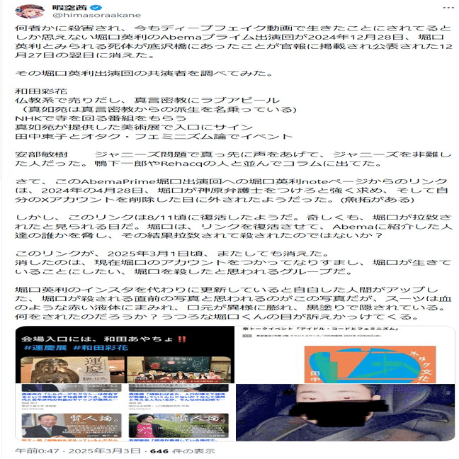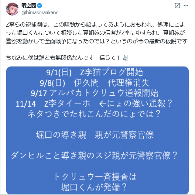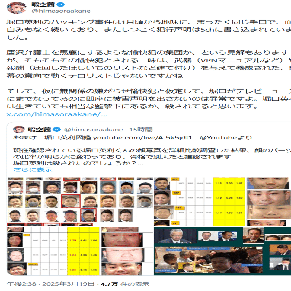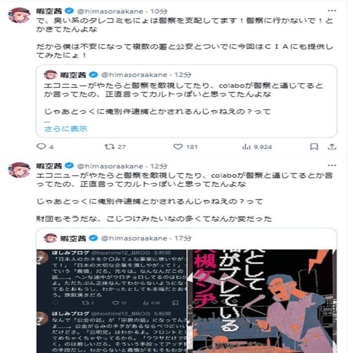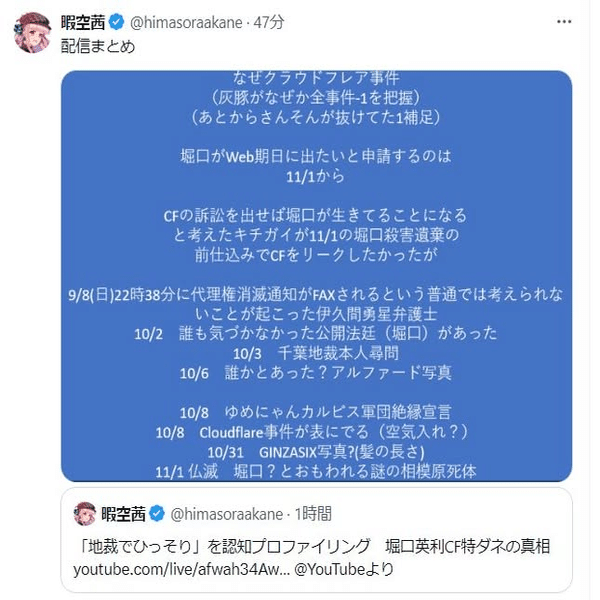 暇空の15時前の「タレコミ」ポストから辿り直して、到底妄想だからでは片づけられるものではない。一連のポストは保存した。