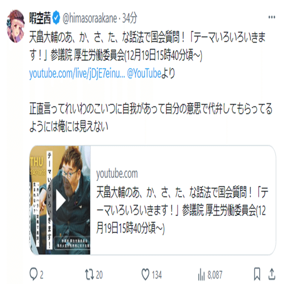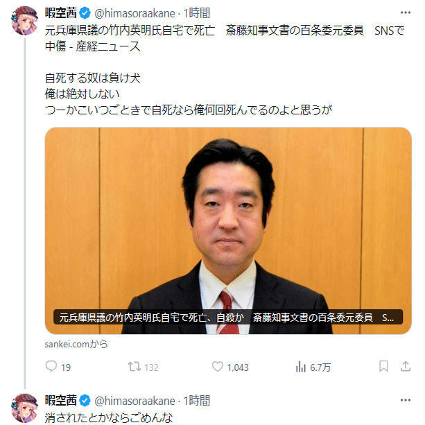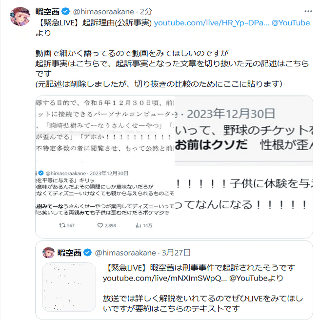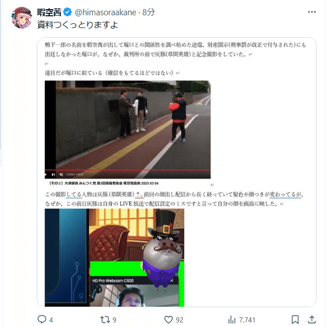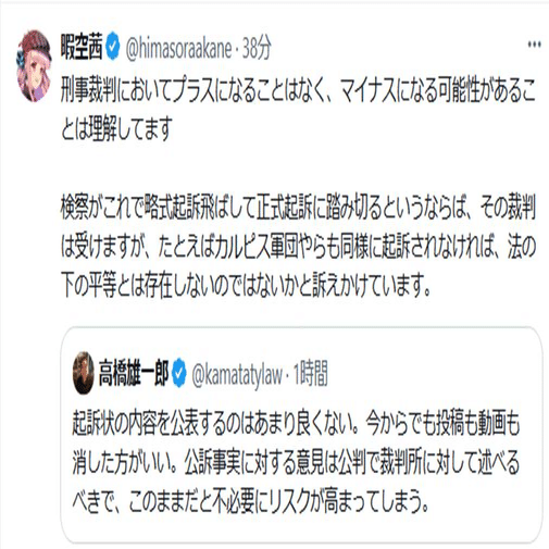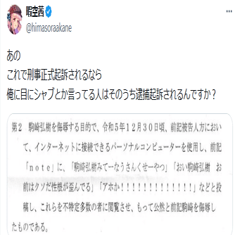 暇空これだからね。妄想世界から出てこれない。だからまず刑事的に止めるしかないんだよ。