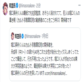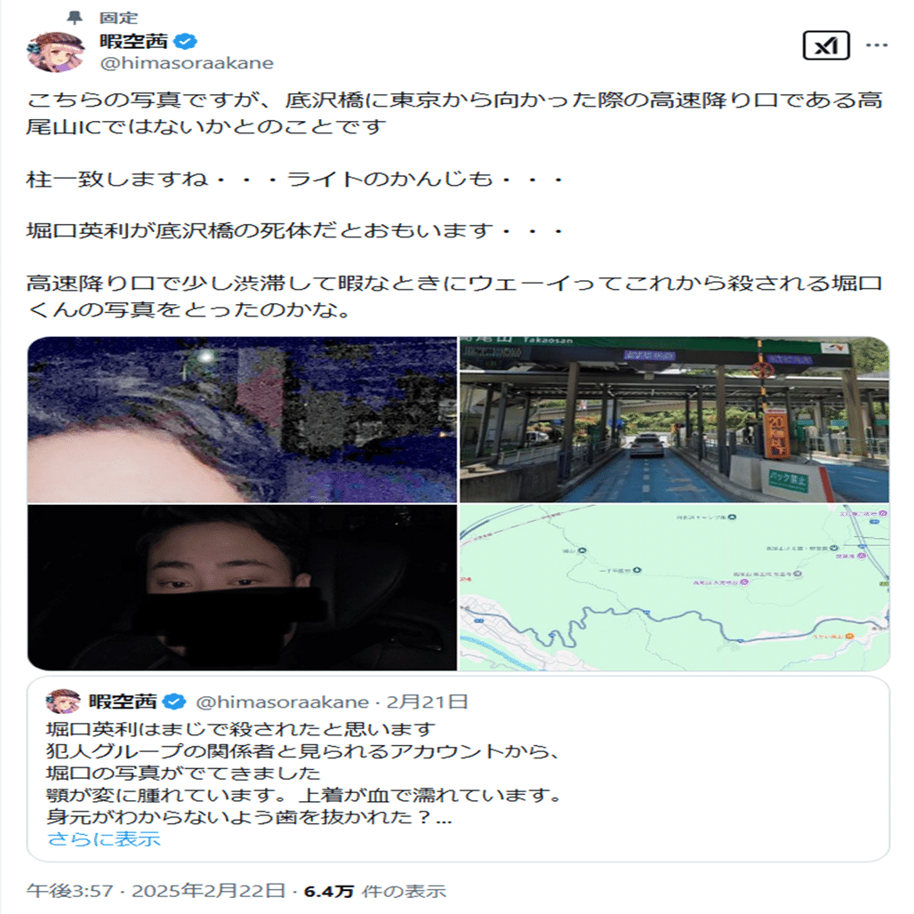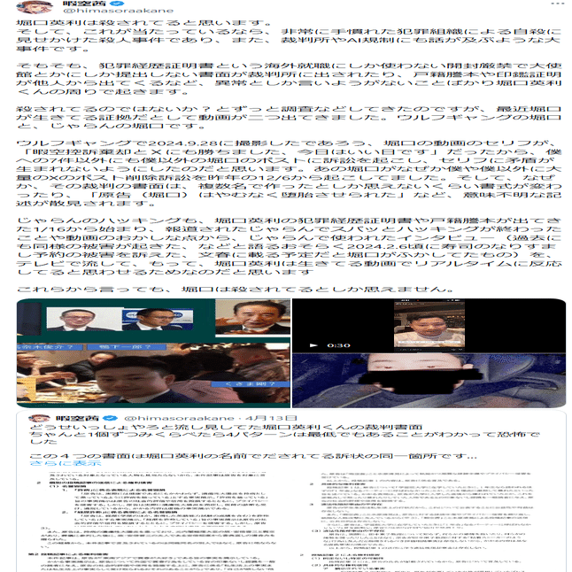暇空が午後ずっとわけのわからないこと言っているなと思っていたが、やっと意味が分かった。堀口と全く接点のない人とのことについての妄想(とうにその発信や警察への資料提出等は刑事事件相当)がさらに許せない領域に入っている。