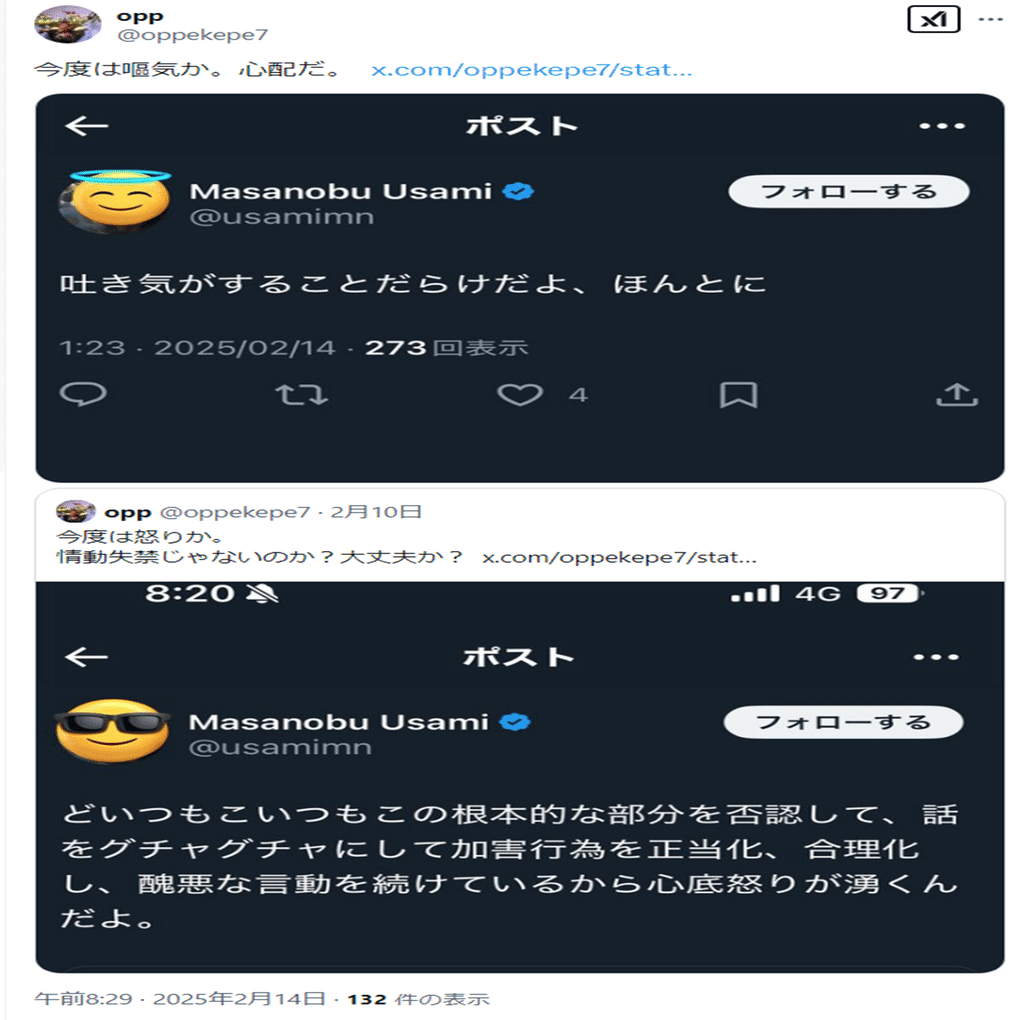 そもそも、誰彼構わず絡んでいって名誉毀損、侮辱、信用毀損を重ねていて、それは単に相手にされていないだけで違法行為であることには違いない。その認識を持てないままだといずれ痛い目に遭うのよね。