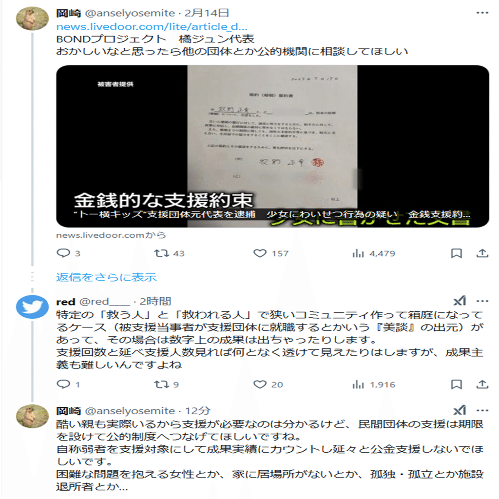 そもそも仮説に仮説を重ね、あるいは叩くことありきの持論を絶対化し、あるいは誤認・誤解に基づいて、「問題」「疑義」を言っていることが大半だし、そもそも若年女性支援/女性支援/支援、NPO(非営利組織)、官民協働といったことの基本を理解せずに、また「成果」「効果」「エビデンス」といったことの理論もその当て嵌めもわかっていない。