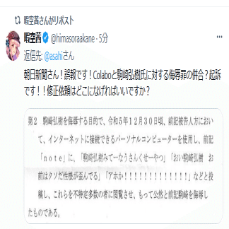 ほむらはスクショの通り全く反省していないし加害と認めていない。実際今も女性支援団体や共同親権反対の弁護士などに嫌がらせをしたり、デマ、歪曲に当たる発信をしたりしているし、最近特に活発。対社会では名誉回復に一定の効果はあっても、対当人や同調者では効果がない、むしろ過激化するということが暇空同様に顕著になっている。被害者が多大な負担を被りながら自力で頑張るというだけでは抑えられないという不条理。