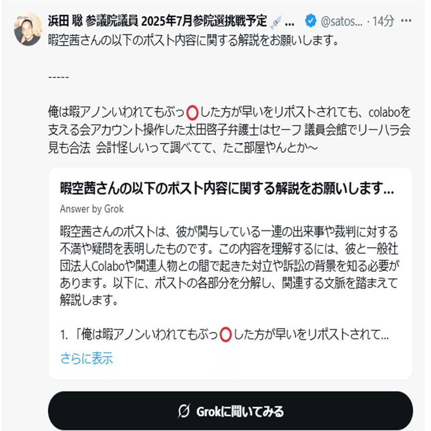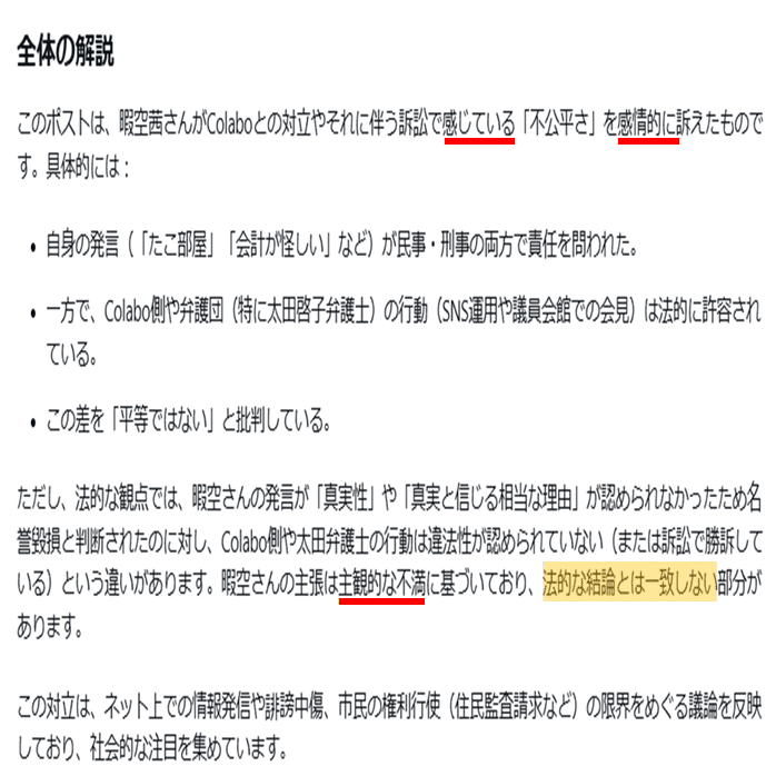 暇空、「調査員」らも「疑問形」や「感想形式」を多用しているからね。そんなことで「リーガルアウト/セーフ」は決まらないということはずっと指摘している。