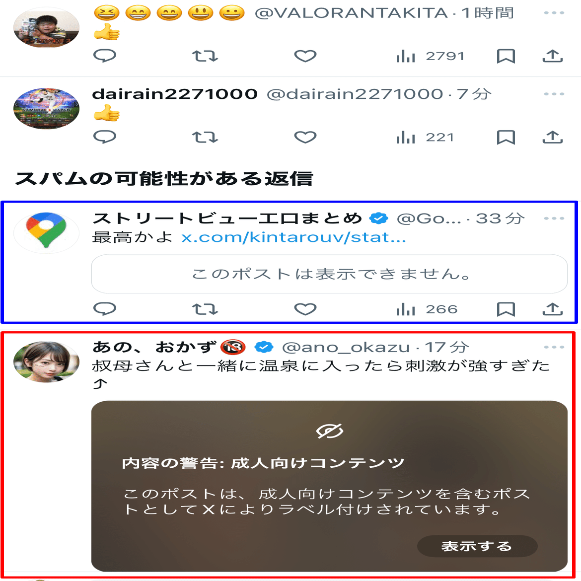 今までは工口動画をリプに投稿していても攻撃的に分類されることはありませんでした。