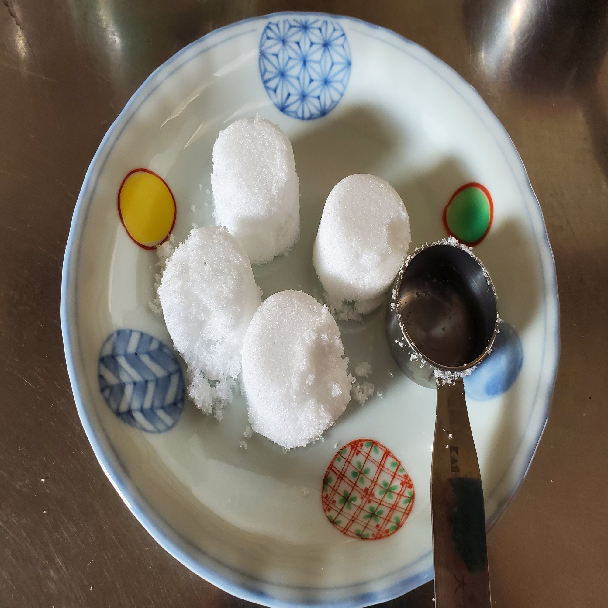 ゼリー手順3 ゼリーにしたい液量250mlにつき大さじ1の砂糖を計量して小皿に出しておく