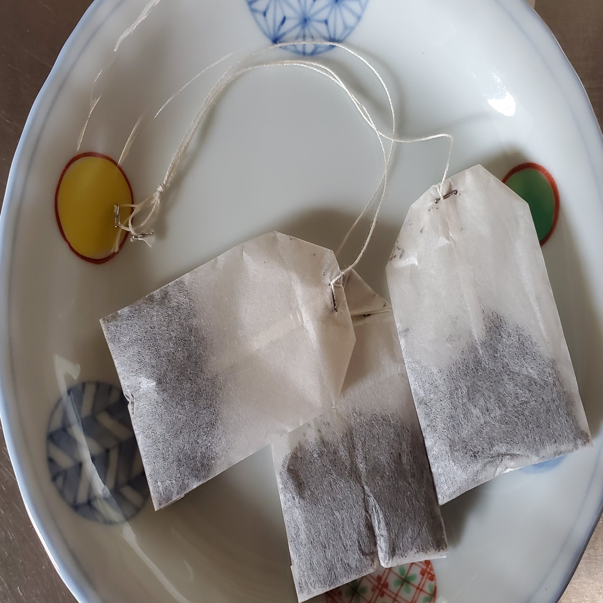 お湯が沸騰したらすぐ、ティーバッグ入りのカップに6~7分目ほど注ぐのですわ