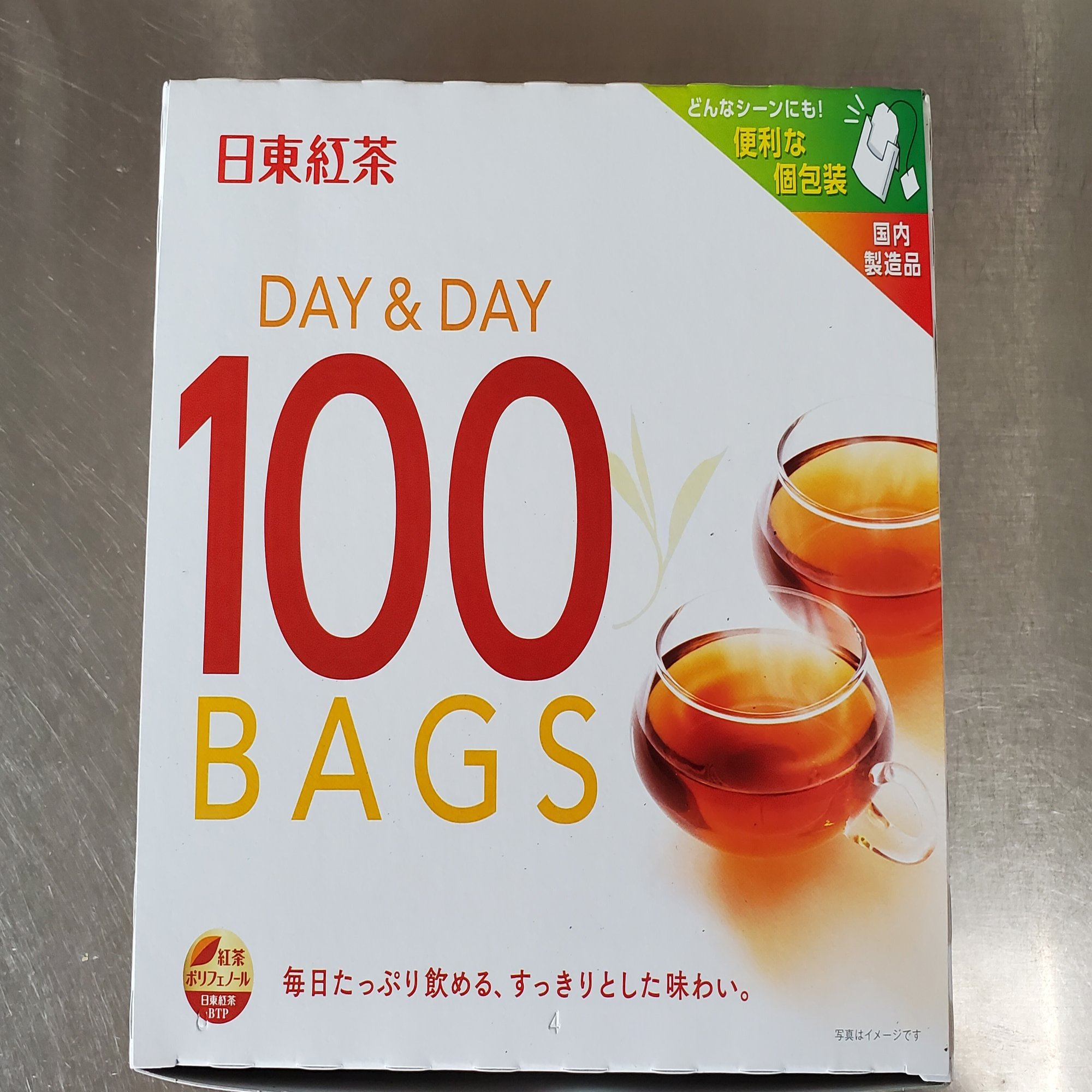 当番が紅茶ゼリーに使っている銘柄。日東紅茶のDAY & DAY ティーバッグ。日東紅茶のティーバッグには黄色いデイリークラブと白いデイアンドデイがあるけれど、当番はデイアンドデイ派。ケニア産の茶葉主体でミルクティー向きのコクがあり、そしてお安い。毎日たくさん飲むのと当番さんはミルクティー派なのでこればっかりです(日東紅茶デイリークラブはセイロン風味で当番にはちょっと薄い。あれはストレートティーが好きな人向きだと思う)。100袋入りを買って自宅用と職場持参用に分けてます。当番さん1日に4杯は飲むからな。
