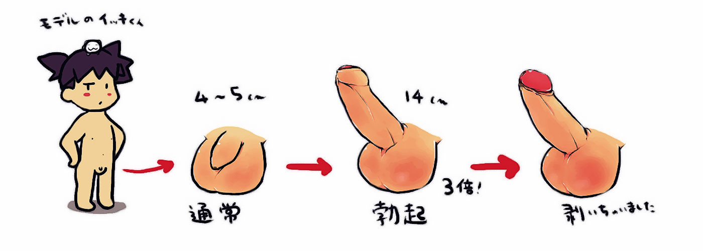 イッキのちんこは通常時は平均かやや小さめで、大きくなると平均よりやや大きいくらいです。