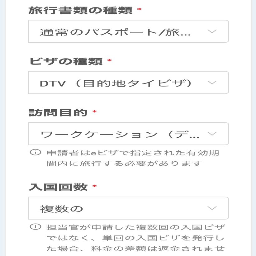 アカウントを作成したら「新しいビザを申請する」をクリックし、DTVビザを選び、個人の情報を入力していきます。